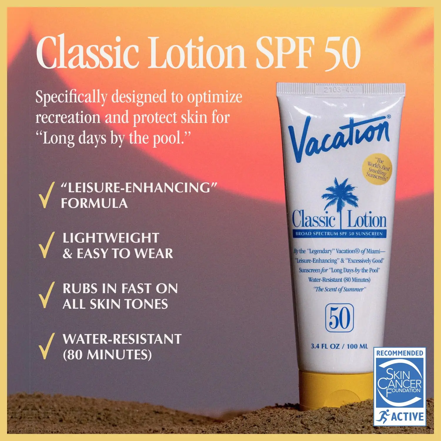 Broad Spectrum SPF 50 Sunscreen Lotion. “Leisure-Enhancing” & “Excessively Good” specifically designed to optimize recreation and protect skin for “Long days by the pool."