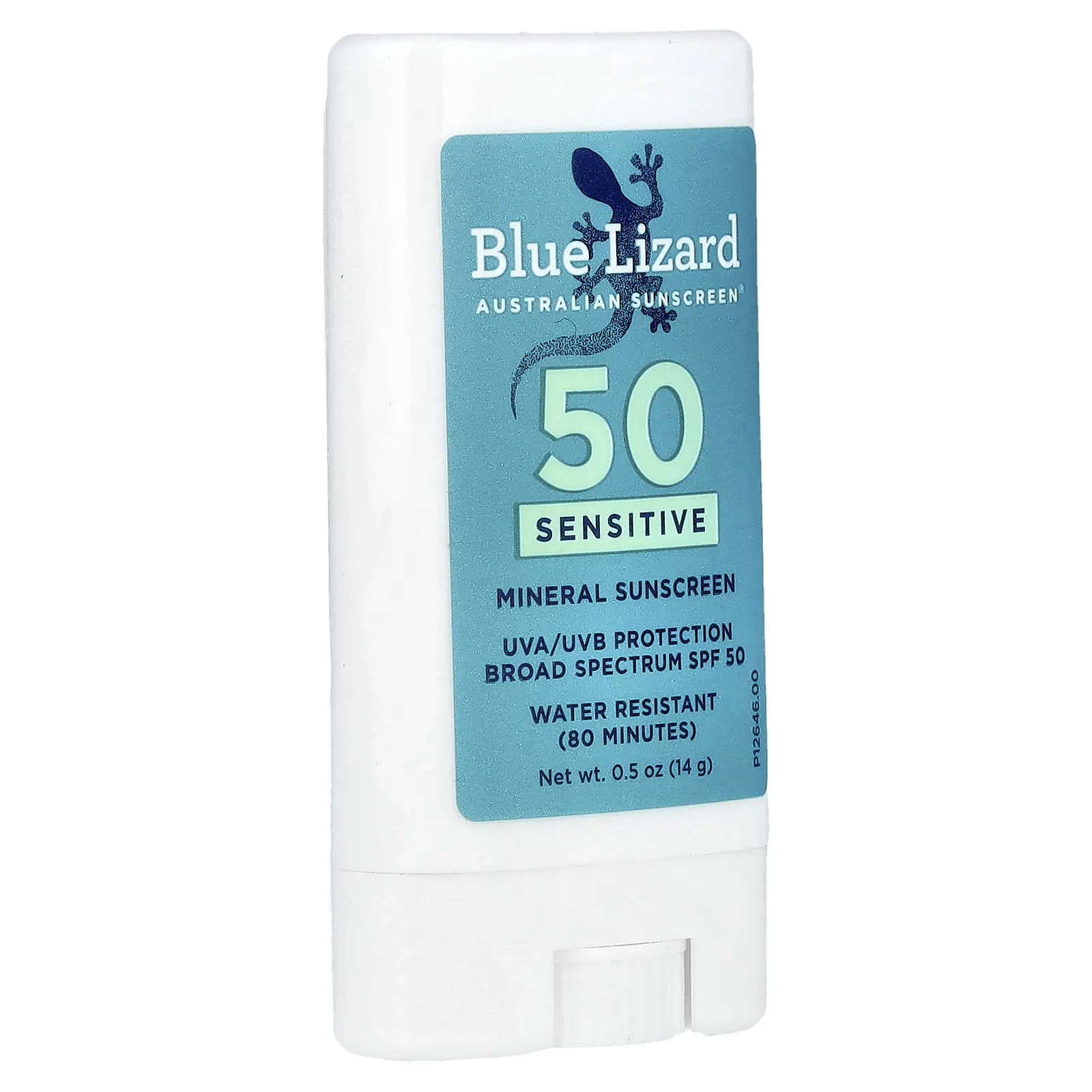 Blue Lizard Australian Sunscreen Sensitive Mineral Sunscreen Stick, SPF 50, 0.5 oz (14 g)