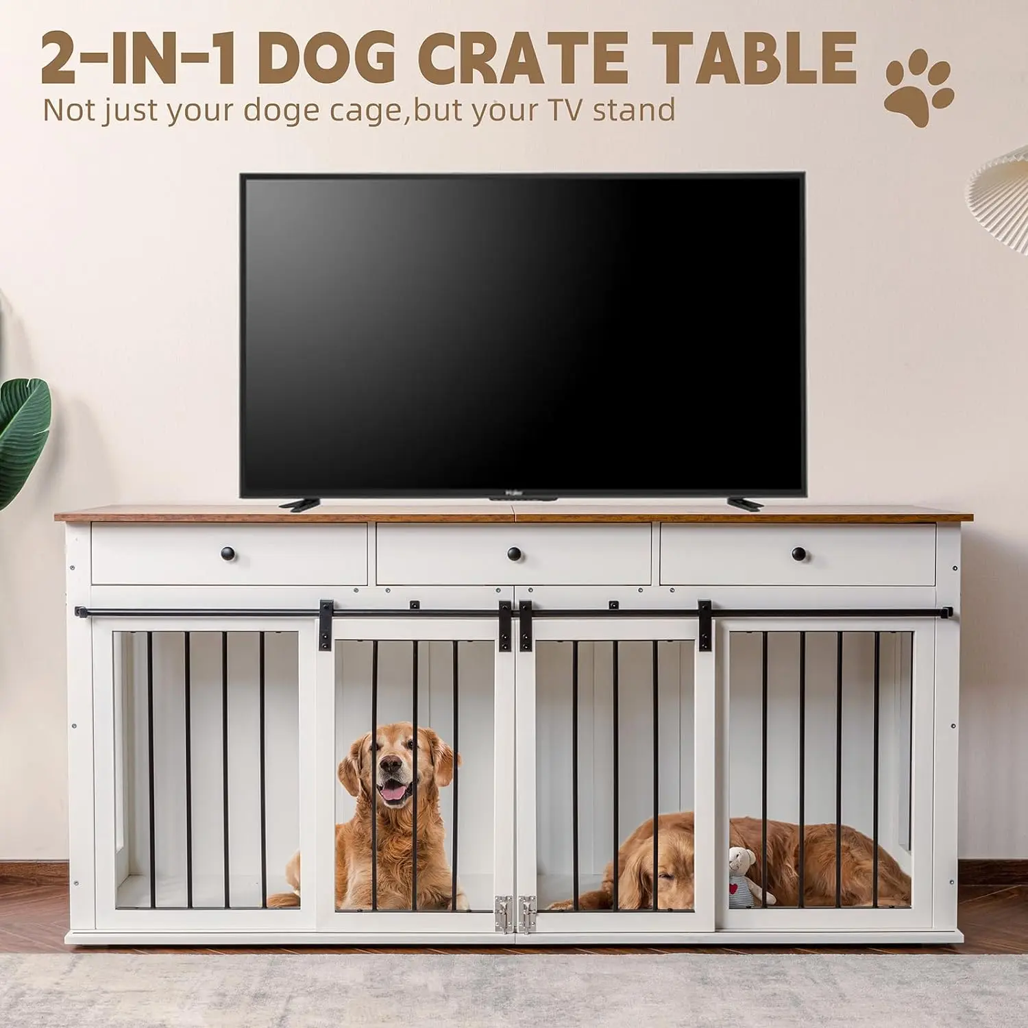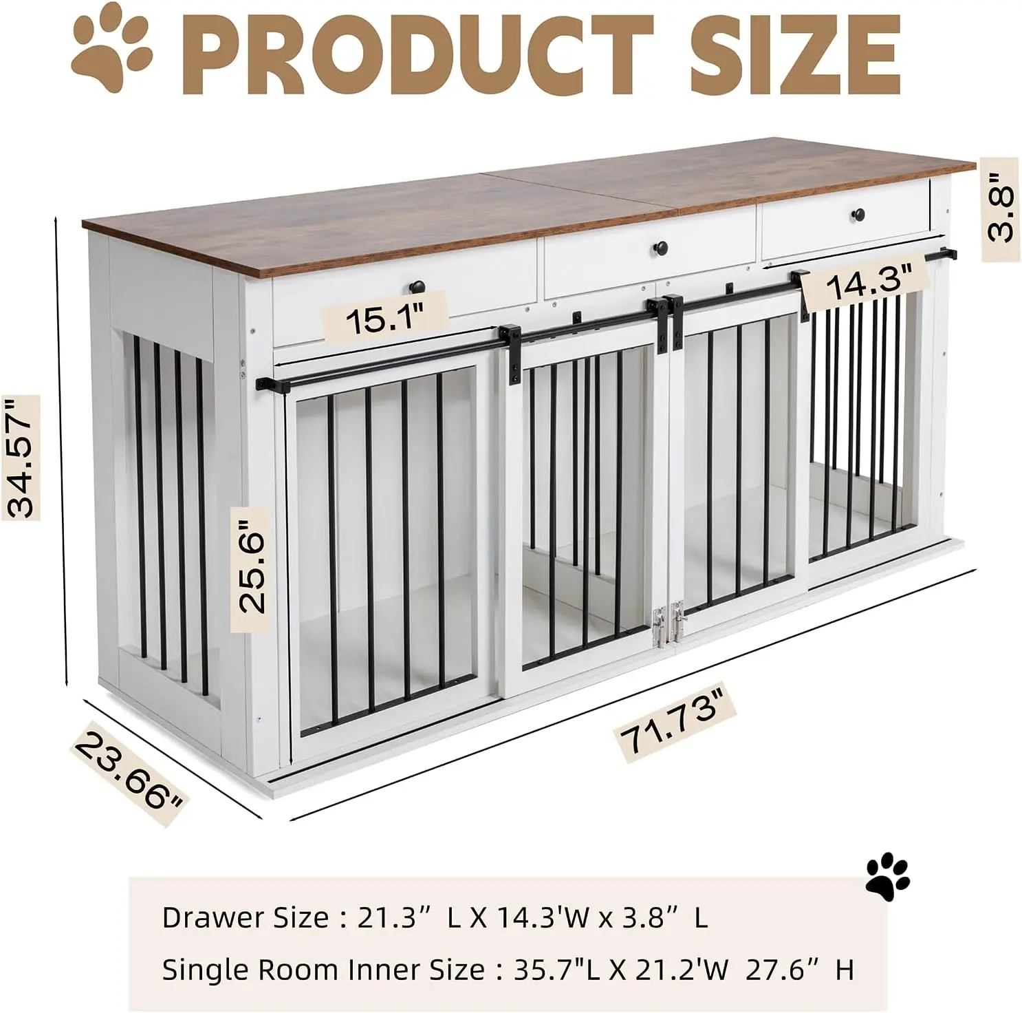 ·【Kind Tips】The dimensions of our dog crate furniture are 72"L x 24"W x 35"H, this large dog crate furniture is ideal for medium & large dogs up to 200 lb.We recommend measuring your pet's height and length before making a purchase to ensure a comfortable fit inside the crate.