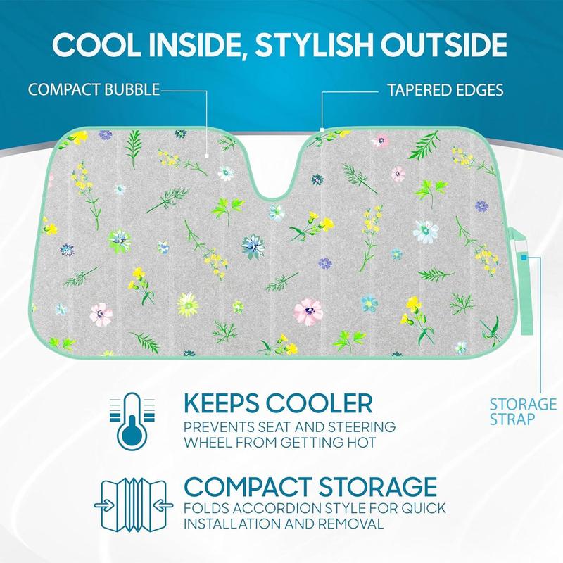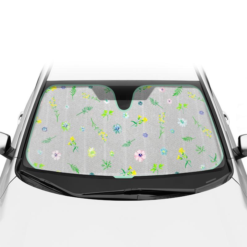 Pastel Floral Windshield Sunshade - Universal Accordion Auto Shade for Vehicles
