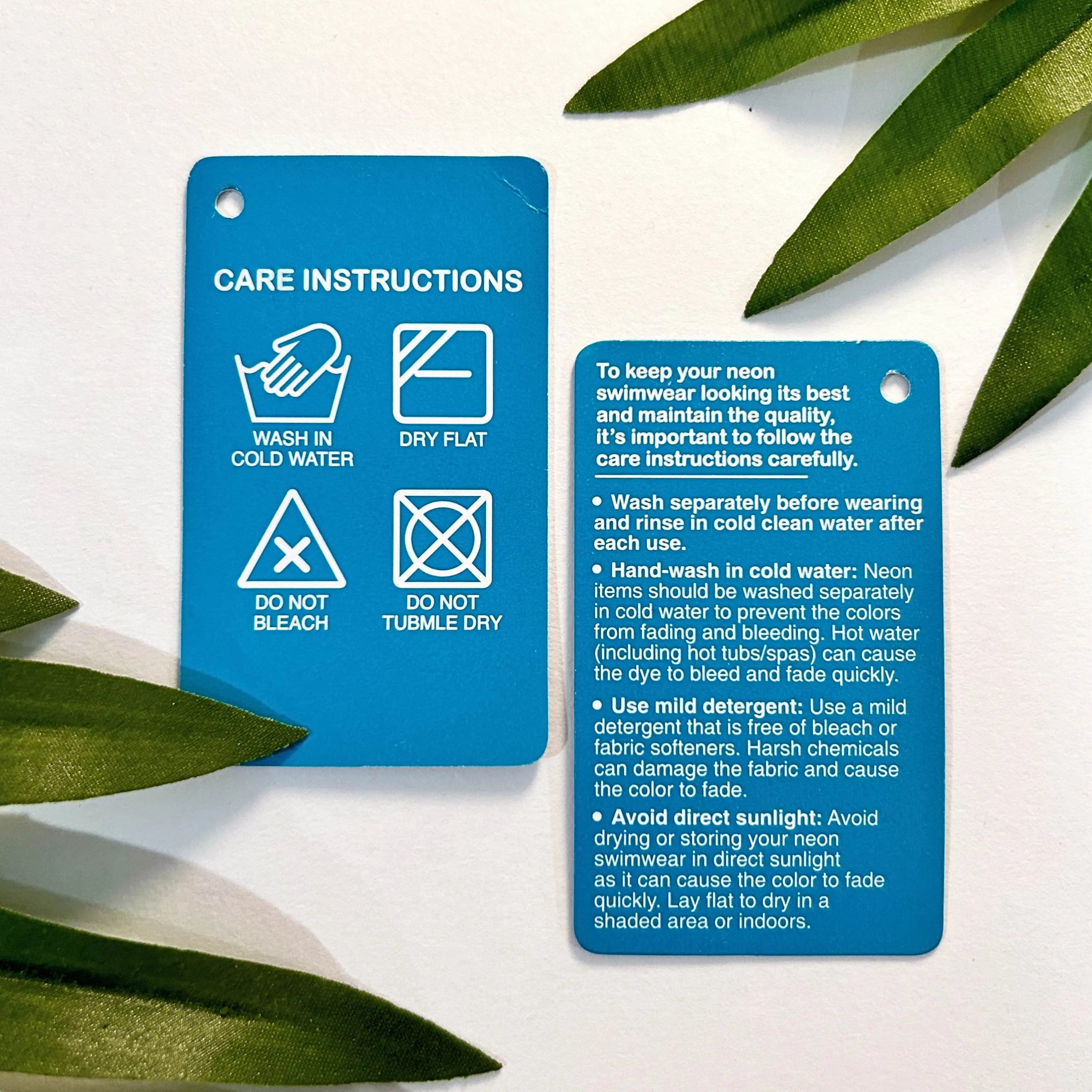 To keep neon swimwear looking its best and to maintain the quality, it’s important to follow the care instructions carefully.
