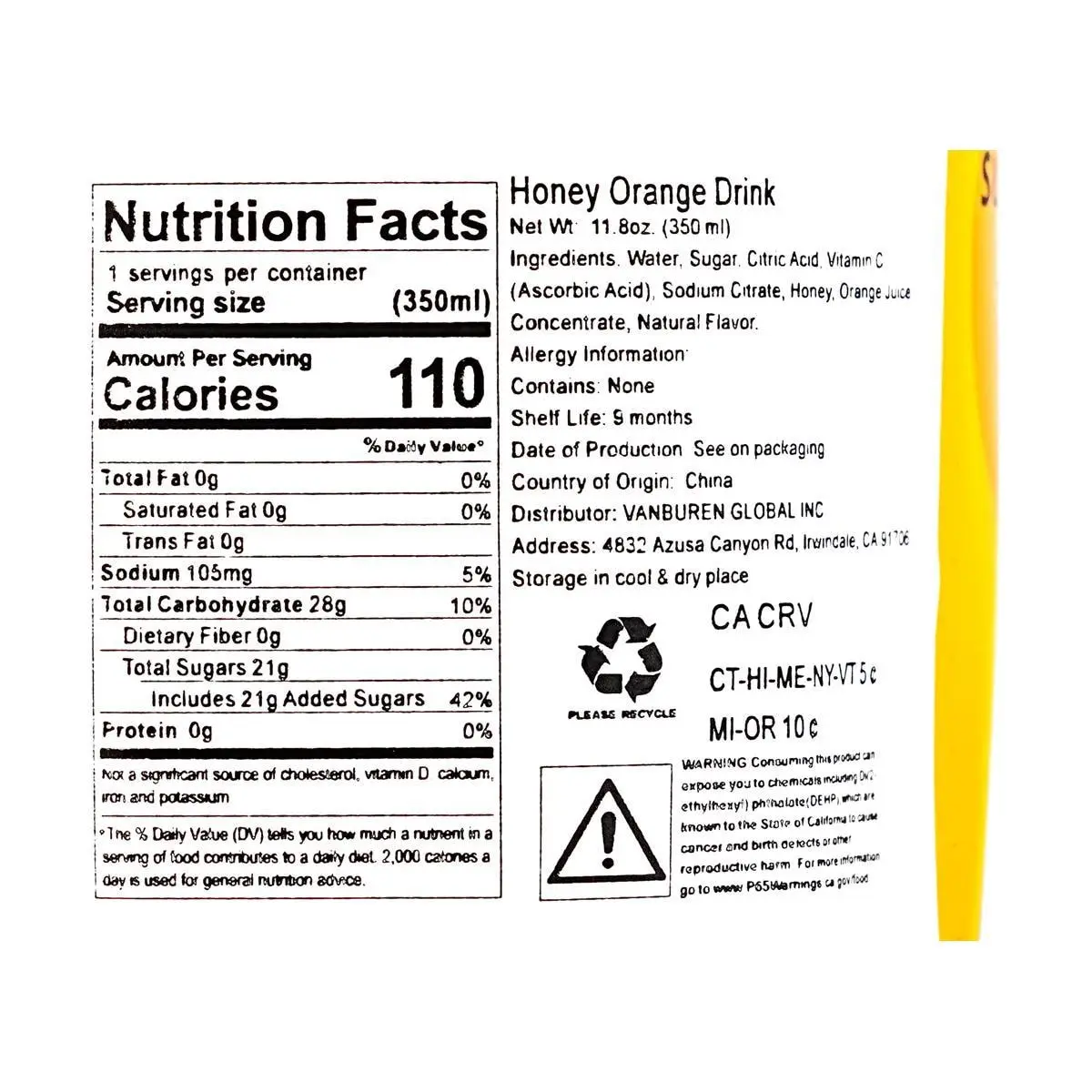 5. Suntory China Orange Drink 350ml - Refreshing Citrus Flavor, Great for Palate Cleansing
