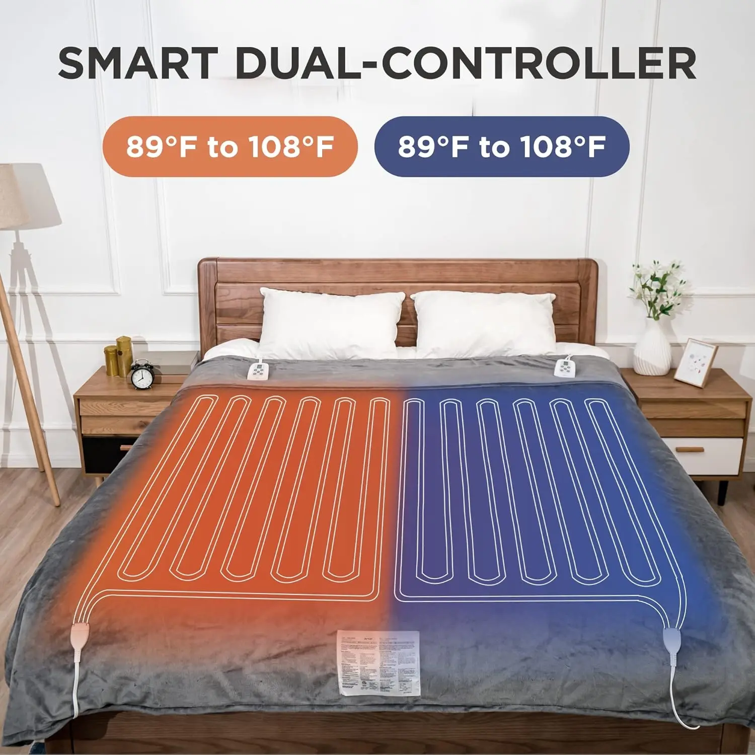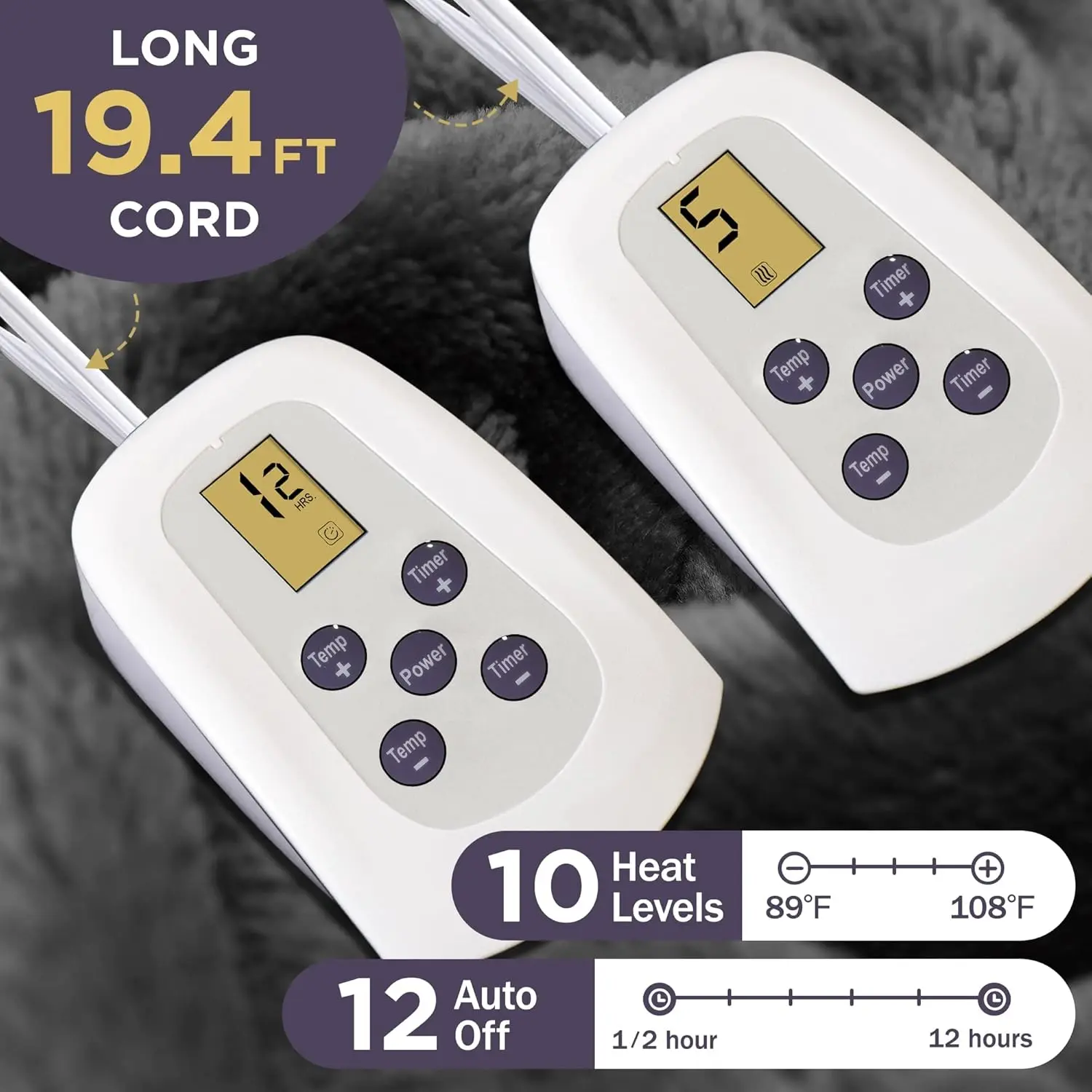 ·【Dual-Zone Temperature Control & 10 Heating Levels】The separate controllers can control temperature on left and right side. The heating blanket has 10-level temperature control settings (89°F-108°F), whether you are taqueen a nap or sleeping at night, it will keep you warm enough.