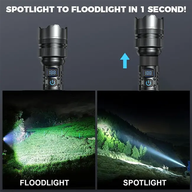 ·Zoomable Feature: The flashlight features a zoomable lens, allowing you to adjust the beam to suit your needs. This makes it versatile for various situations. 🌟