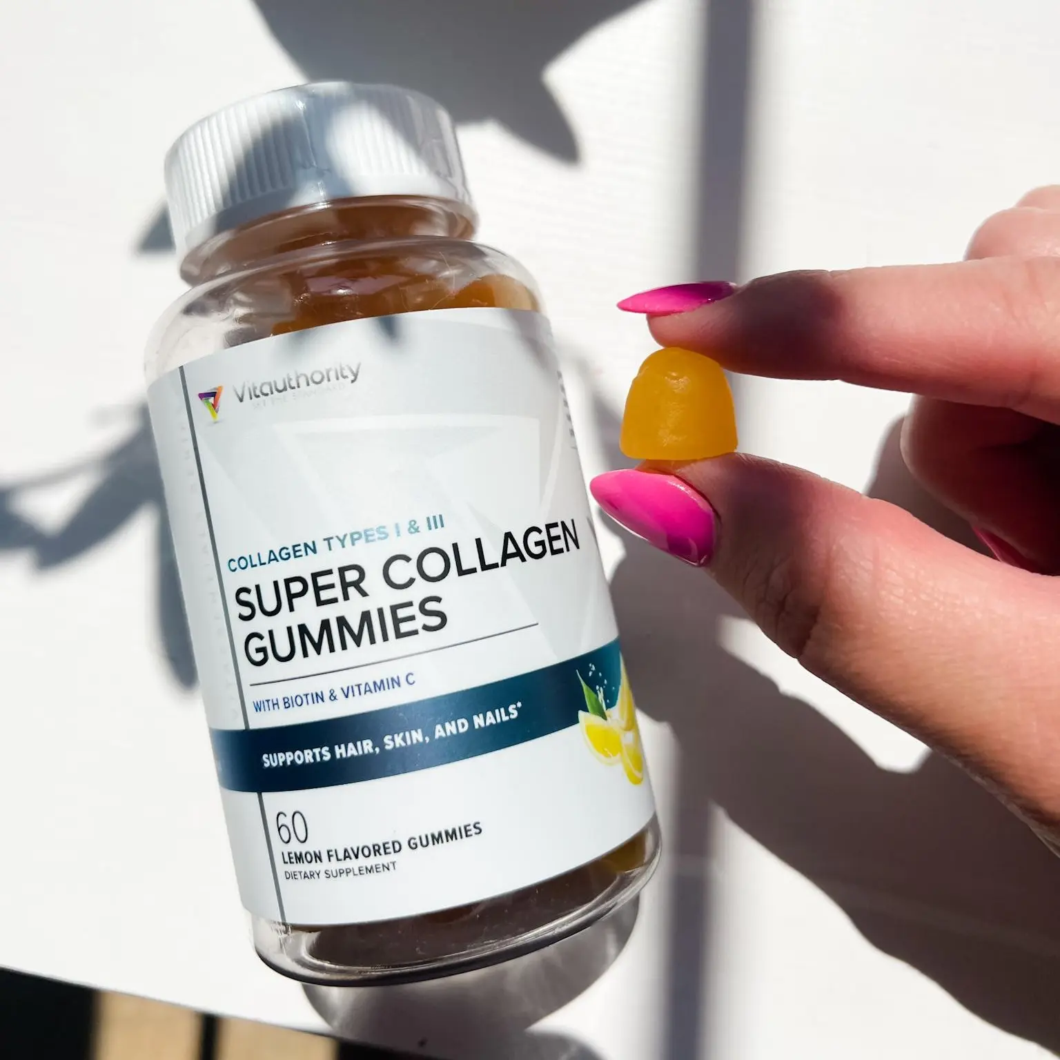 I am typically not a fan of gummies, but I got a bottle of these as a gift in my order. I don't like wasting anything, and everything I get from Vitauthority is beyond excellent, so I thought I would try them. They are AMAZING! My nails have never been stronger! I look forward to taking them everyday and can't wait to buy another bottle. They taste great and the benefit they provide for my hair and nails is truly noticeable.