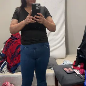 These pants are my favs!!! They look like jeans but feel like leggings. I could have sized down to a small they are so stretchy and comfy! Love them! Wore them to our holiday party!