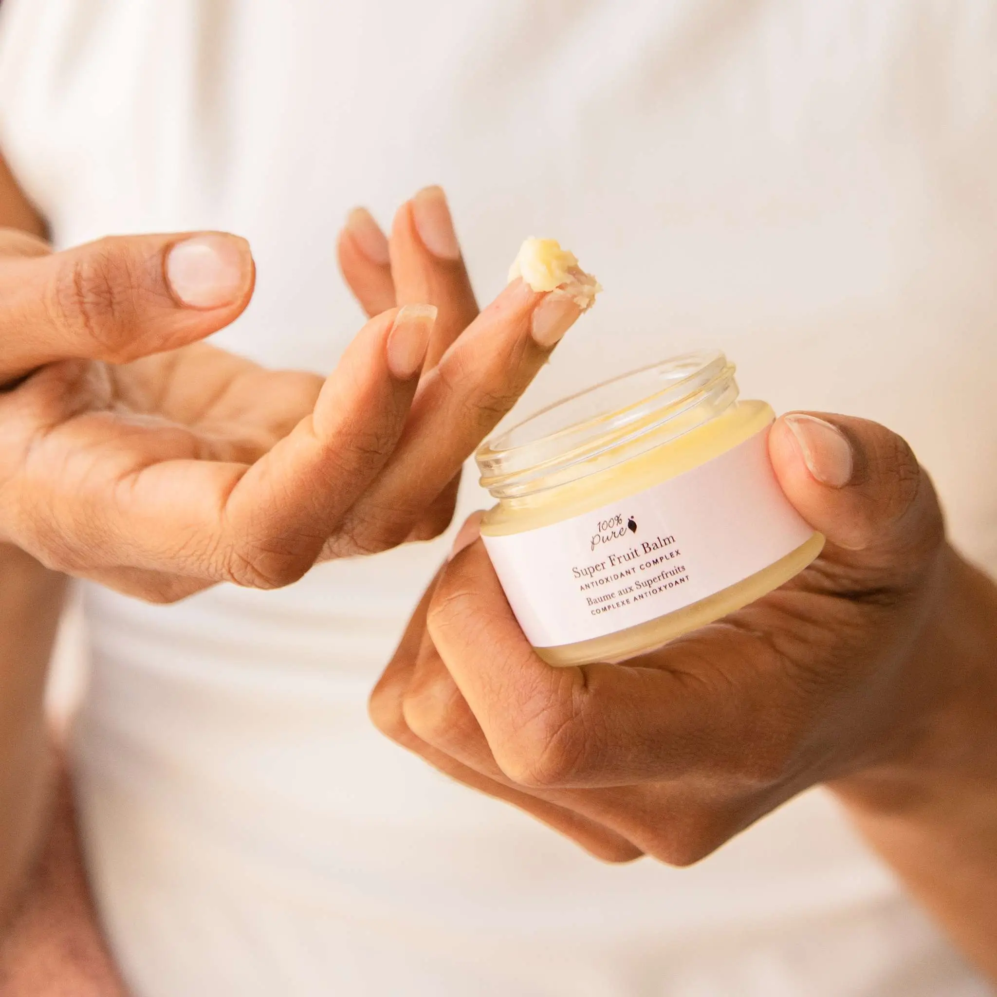 Indeed, @hormonehealthbabe is definitely right. 👏  This nutrient-packed balm is a game-changer for dry or sensitive skin — think rich butters, antioxidant-packed acai & goji berries, and deep hydration all in one luxe step.  Seal your skincare with pure magic.  #SkincareRoutine #SuperFruitBalm #100PercentPure #CleanBeauty