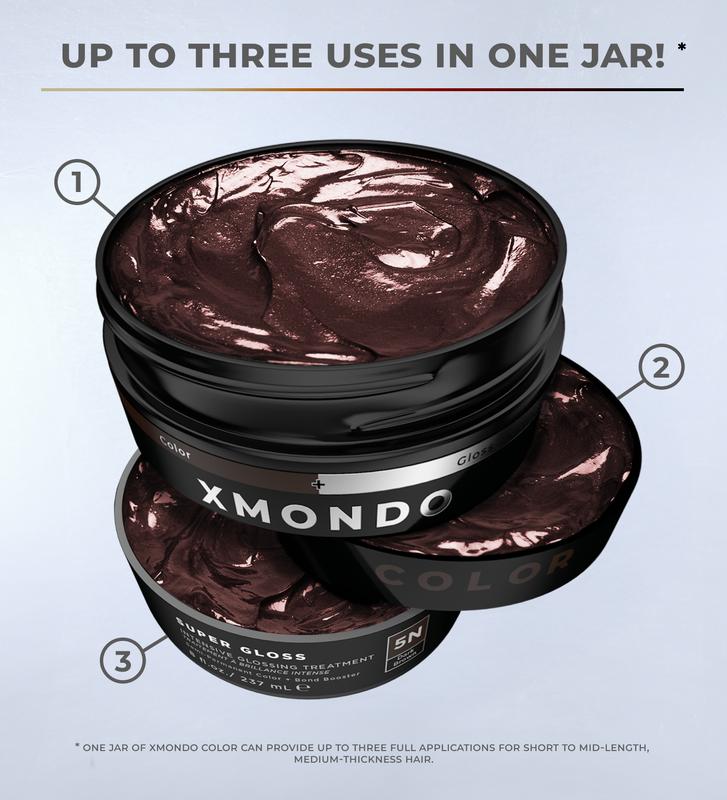 I have used the clear glossing treatment and it’s one of my favorites and when I saw it in 5N dark brown I knew I had to get it. For starters it smells delicious, it didn’t stain my bathtub, skin, scalp or my towels (oxiclean powder took the stains right off the towels which I was really impressed!). When I was done my hair was super soft and dark. I was so happy with the results. I love Xmondo products!