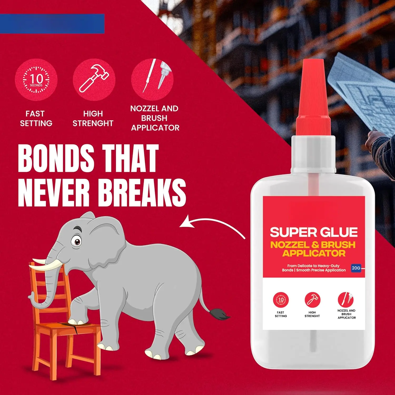 {More Control & More Precision} Using Glue can be messy but not with GH 1200. Our super glue with brush ensures accurate and precise usage with no mess. Our innovative superglue has a applicator brush and nozzle which gives you the control to use super glue for plastic how you require