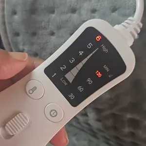 This heating pad is everything and some. It has six different temperatures and it also has timer for every 30 minutes that you can set. This was a great value and a great purchase. Great for just sitting on the couch or if you're sitting at your desk.