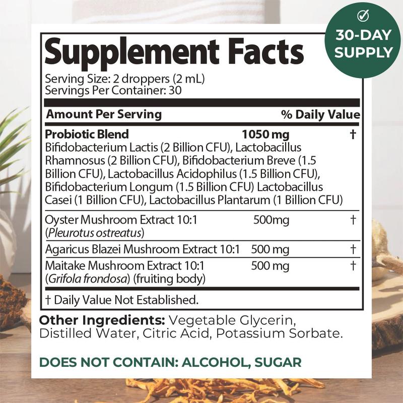This elixir blends the gut-supporting power of Maitake, Oyster, and Agaricus blazei mushrooms into a daily ritual that’s easy to take and easy to trust.