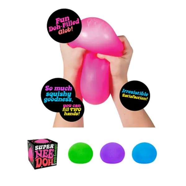The groovy gratifying NeeDoh is now available in a super-sized version! Squeeze it, pull it, smush it. So much squishy goodness, you can fill two hands! However you choose to manipulate this fun-dough filled glob, you will experience an irresistible satisfaction that soothes your soul and always returns to its original shape.