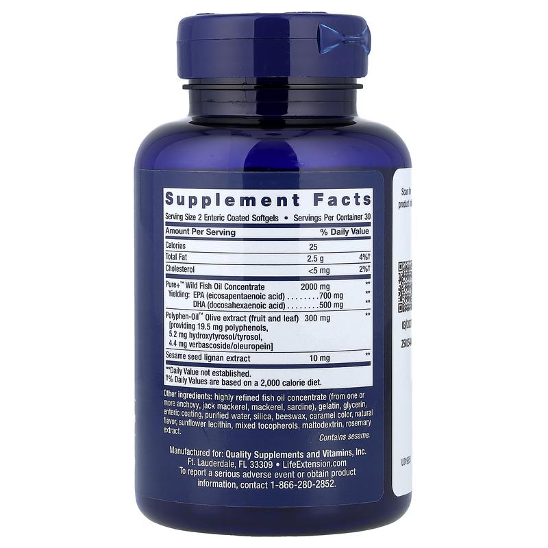 Life Extension Super Omega-3, EPA/DHA Fish Oil, Sesame Lignans & Olive Extract, 60 Enteric Coated Softgels