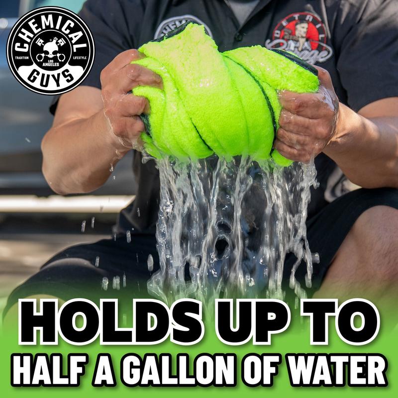 A hefty & fluffy towel, however leaves so much neon green lint whenever I dry the car. I tried using it again after washing the towel and it still does it. When I throw the towel & pull it down the car, it doesn’t glide off the car body smoothly like their video tutorials, very skippy like sweaty thighs down a metal slide kind of thing. Also leaves water beads so you have to keep going over it to dry. It does hold a lot of water though so that’s one good thing about it.