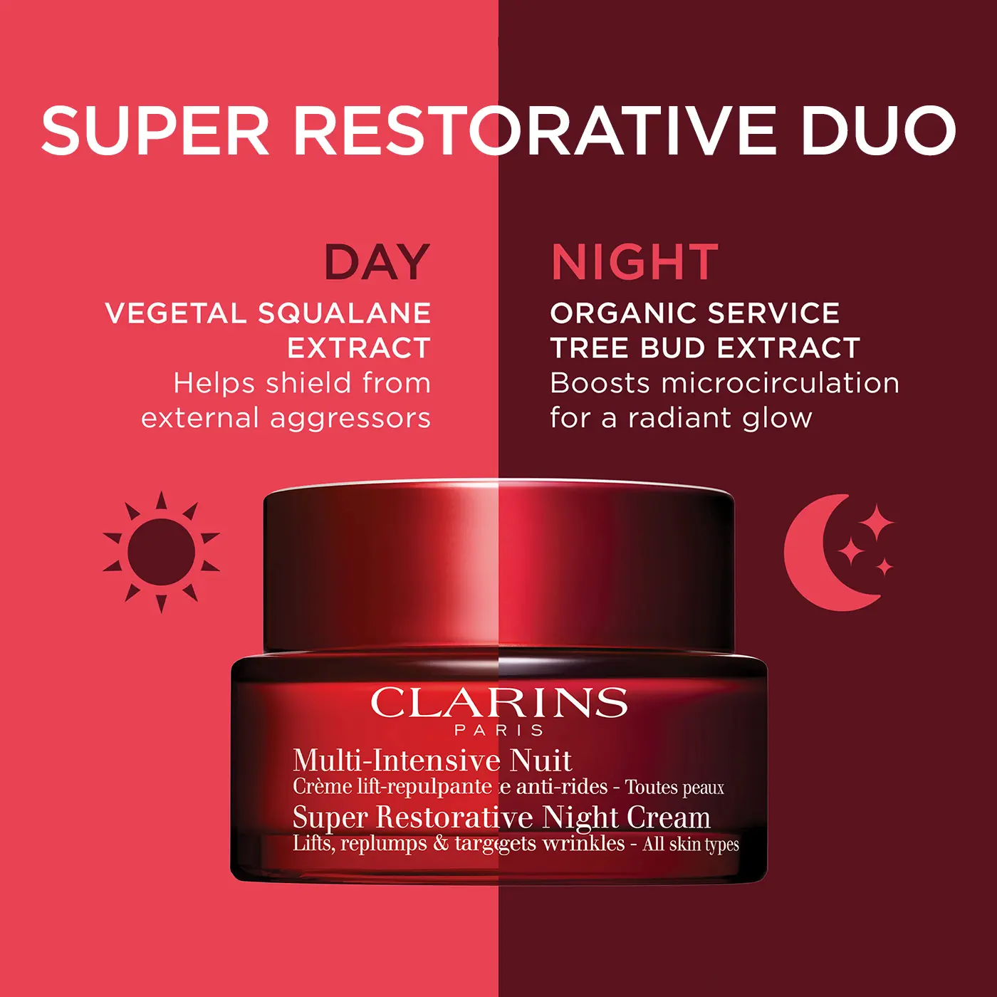 This next generation green beauty innovation is powered by 91% ingredients of natural origin. Clarins’ proprietary new Lift-Replenish Duo features wrinkle-fighting Organic Harungana extract—as effective as retinol* and gentle on the skin— to replenish and visibly minimize loss of density and new Organic Gorse extract, to visibly tighten and improve slackening caused by hormonal deficiencies linked to menopause. Organic Desert Date extract and a vitamin C derivative promote a more even skin tone. Organic Sea Lily extract intensely hydrates to leave skin feeling soft and comfortable. Organic Service Tree Bud extract boosts microcirculation while you sleep for a radiant glow by morning. Clarins' plant-based Anti-Pollution Complex features Nipplewort, Furcellaria & Organic White Horehound to help minimize damage from environmental pollution that leads to premature signs of aging, including skin-aging blue light from electronics. Skin appears more even, “lifted” and revitalized; lines and wrinkles are visibly reduced.