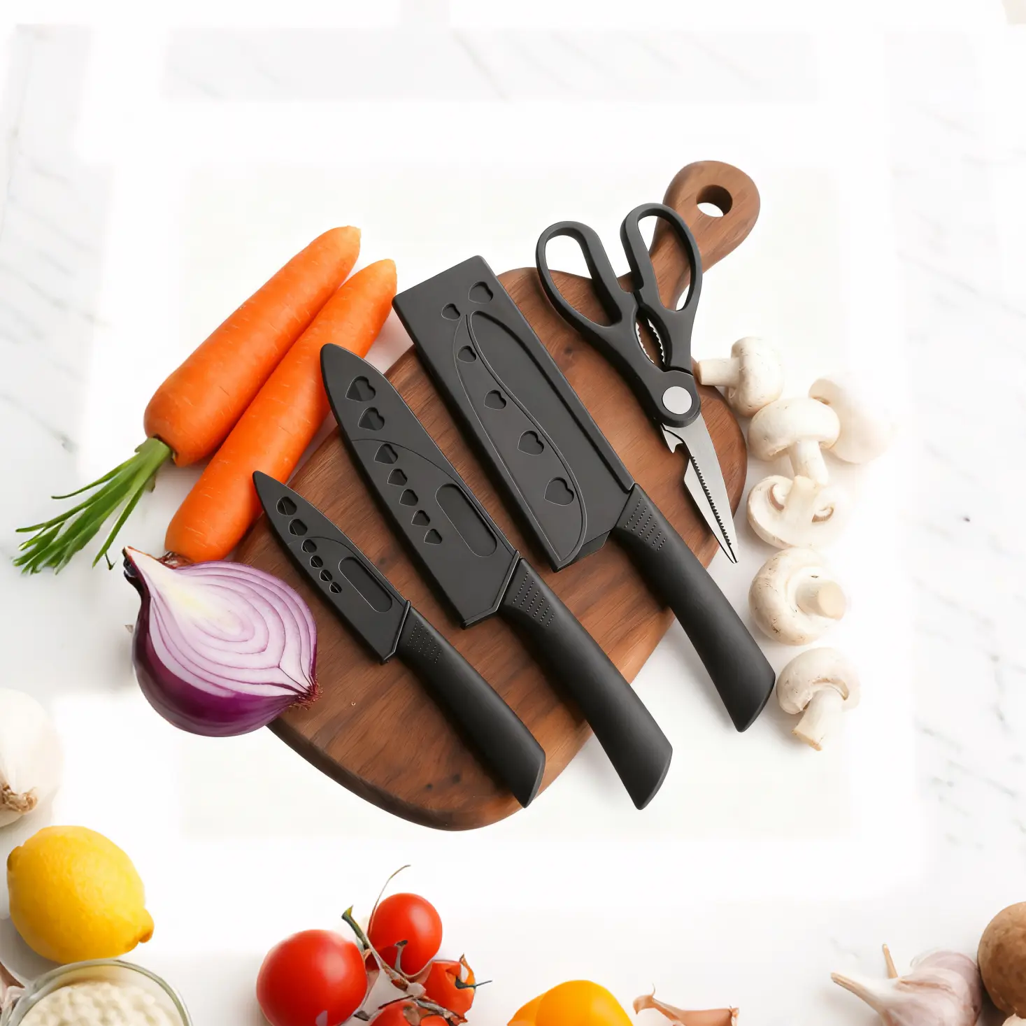 ·Complete Set: This set includes 4 pieces: a fruit knife, scissors, and steak knife. Perfect for kitchen cooking use. 🍽️
