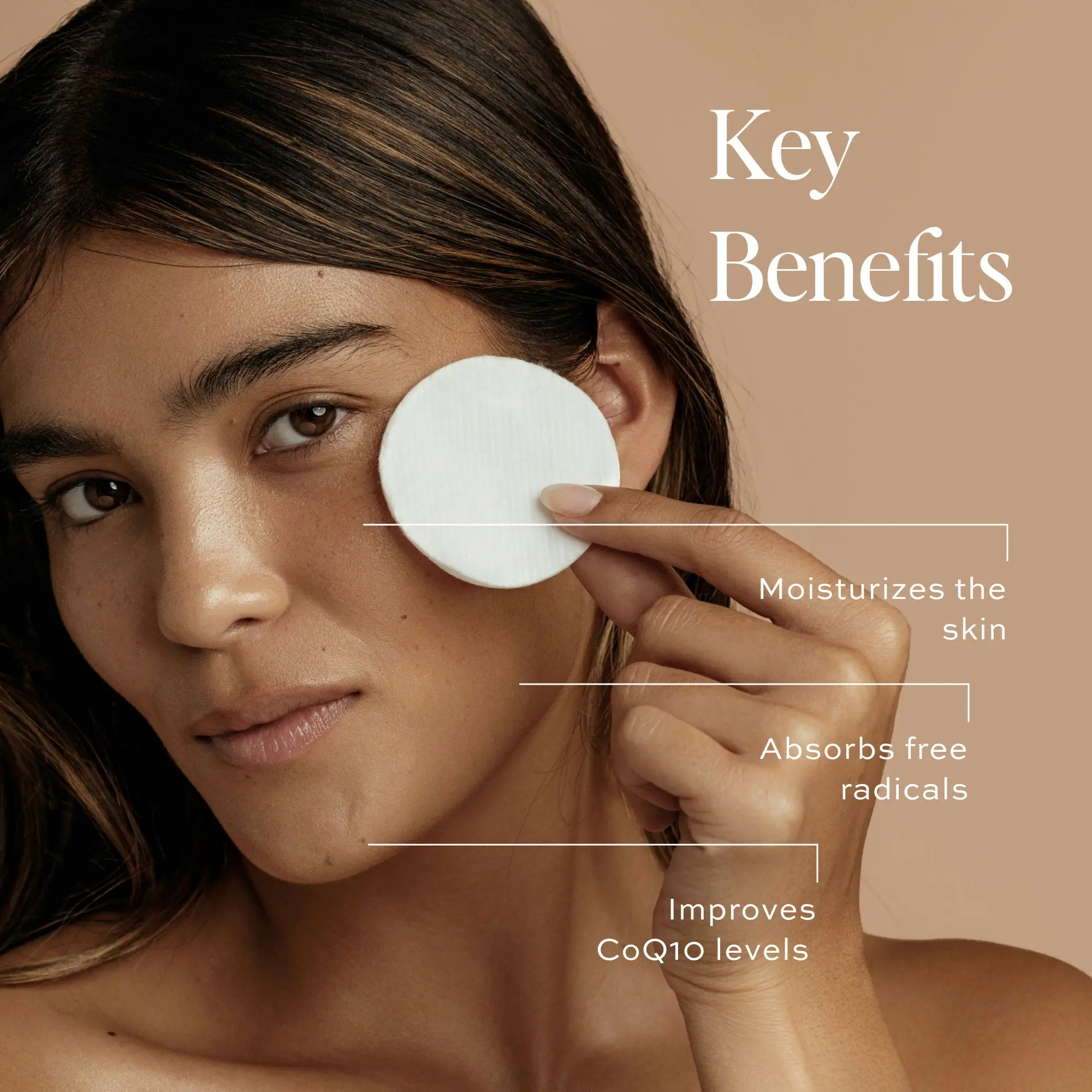 This product’s key ingredient supports the delivery of a topical, supplemental boost of CoQ10 that can help reduce the formation of oxidative stress in older skin and assist in restoring a natural and healthy pH balance.