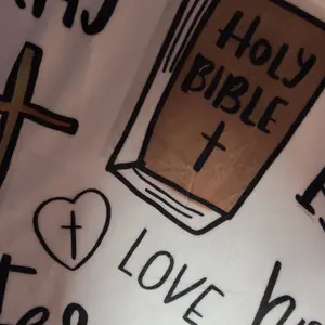Does not match the description of what I ordered. The blanket was supposed to be white with the words pray and crosses and such. It is pink with a foreign language.