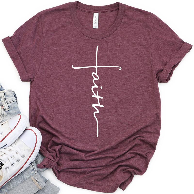 Faith Cross Tee - Heather Burgundy