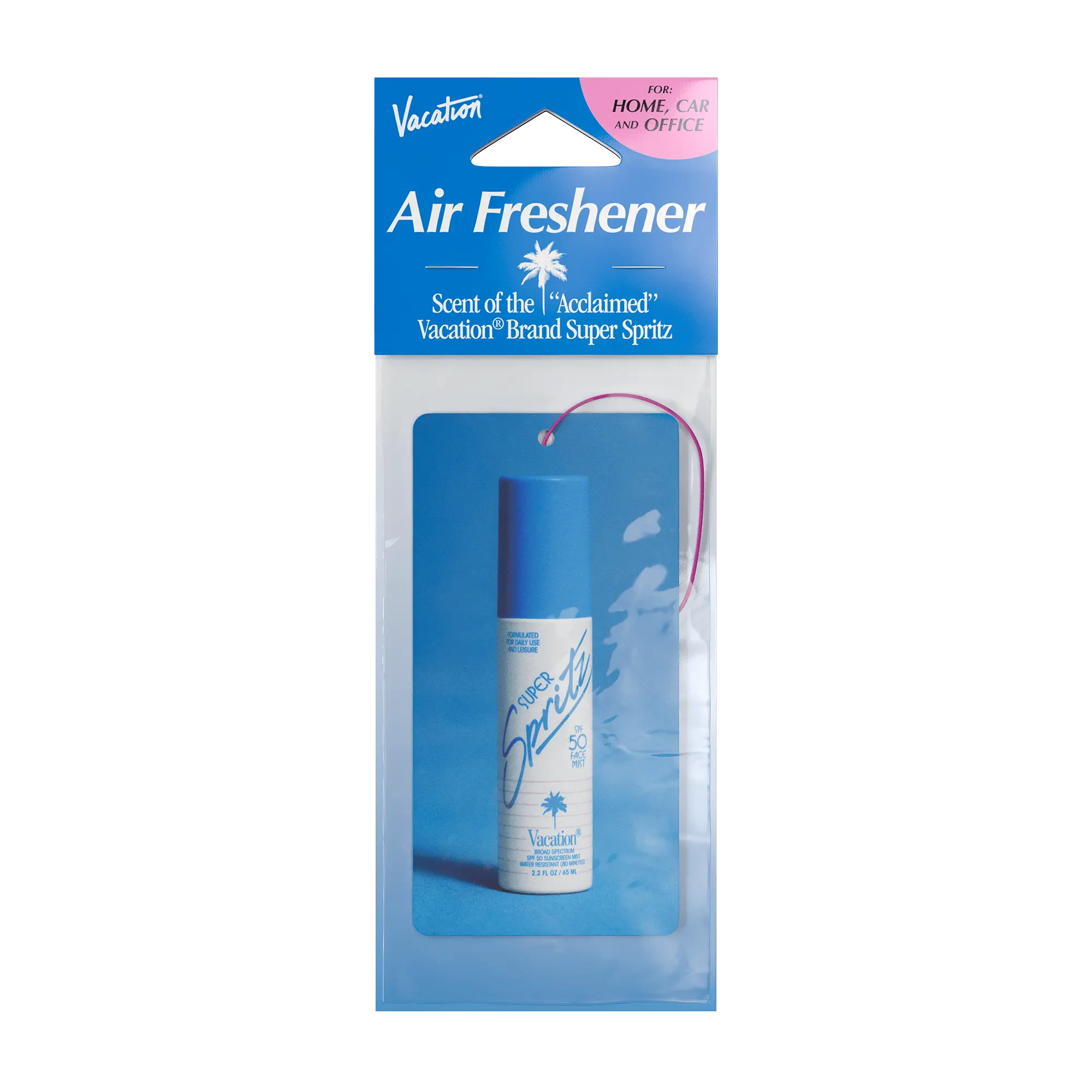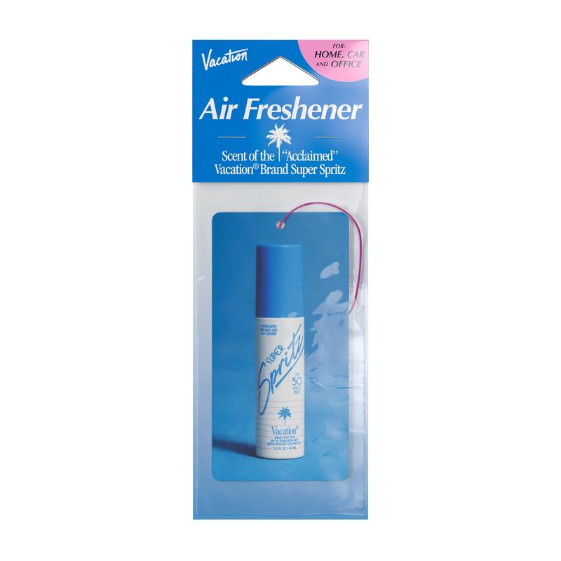 The Vacation Super Spritz Air Freshener showcases our "World-Famous" Signature Scent as featured in our innovative Super Spritz SPF 50 Face Mist. The scent has been conveniently diluted into air freshener form and is suitable for use in home, car, office or boardroom.