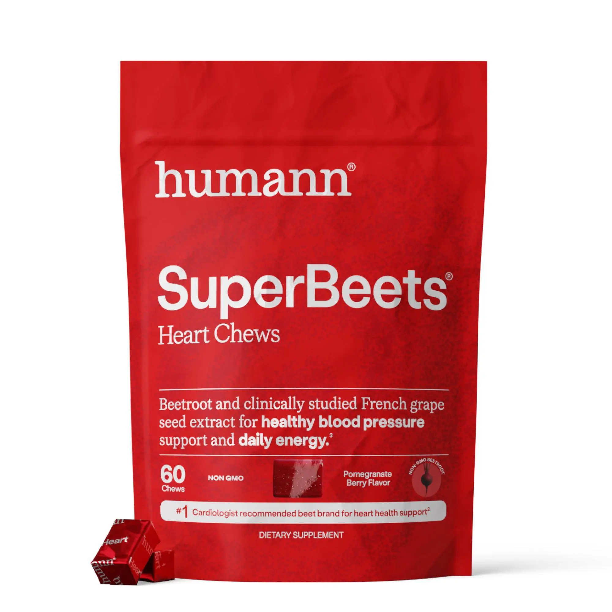 Humann SuperBeets Heart Chews support healthy blood pressure, circulation and blood flow with powerful, plant-based ingredients, including clinically researched grape seed extract from Southern France.