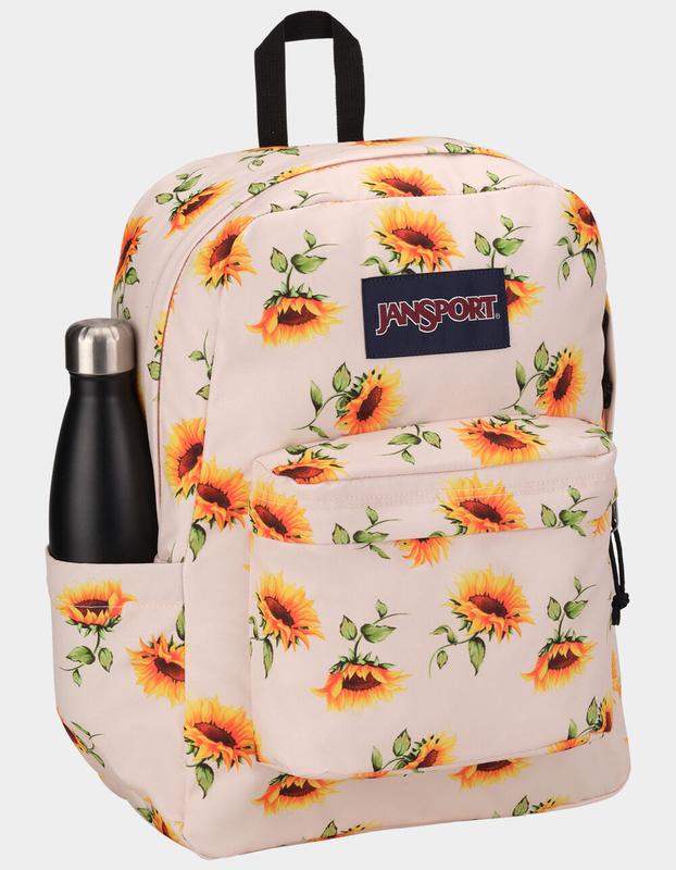 JanSport SuperBreak Plus Sunflower Backpack. The SuperBreak Plus is a fresh take on the classic SuperBreak pack with an internal laptop sleeve and side water bottle pocket, making this pack as functional as it is far out.Product Features:•Front utility pocket with organizer•Fully padded back panel•One large main compartment•Side water bottle pocket•Straight-cut, padded shoulder straps•Web haul handle•Made in part with recycled materials•Internal padded sleeve fits 15" laptop Content & Dimensions:•Dimensions: 16.75" x 13" x 8.5",25L MANUFACTURER'S LIFETIME WARRANTY