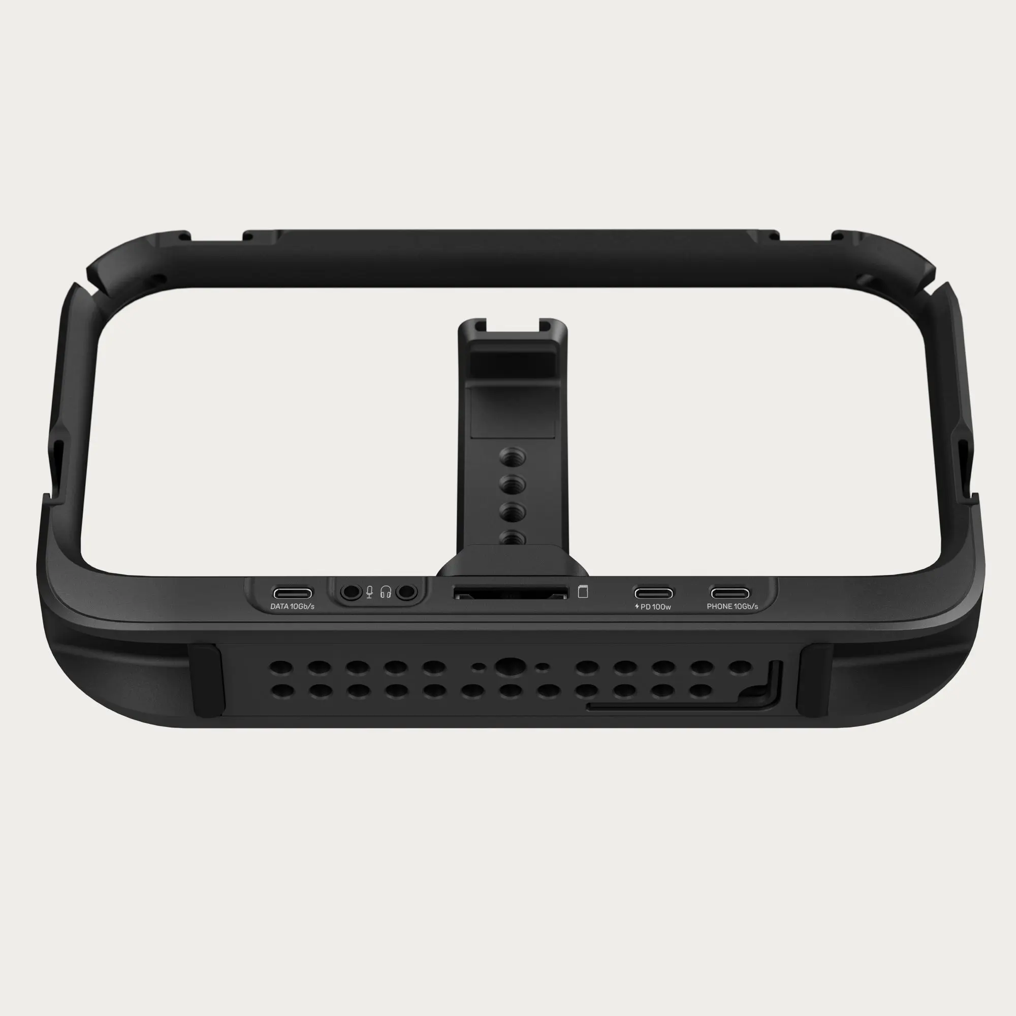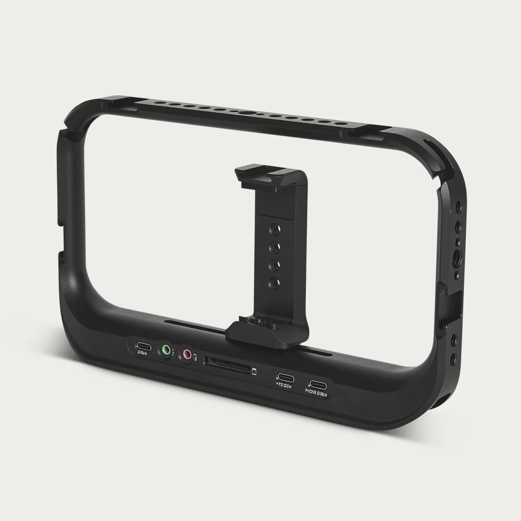 SuperCage is a pro-level mobile cage with a built-in USB-C hub, allowing you to connect up to six accessories directly to your USB-C iPhone or Android. Designed as an open system with continuous NATO rails, an Arca-compatible base, and multiple threaded mounting points, it lets you build a fully customized rig using the accessories you love. Whether you're shooting handheld, on a tripod, or with a gimbal, SuperCage provides secure phone mounting, flexible positioning, and seamless accessory integration for a faster, more efficient workflow.