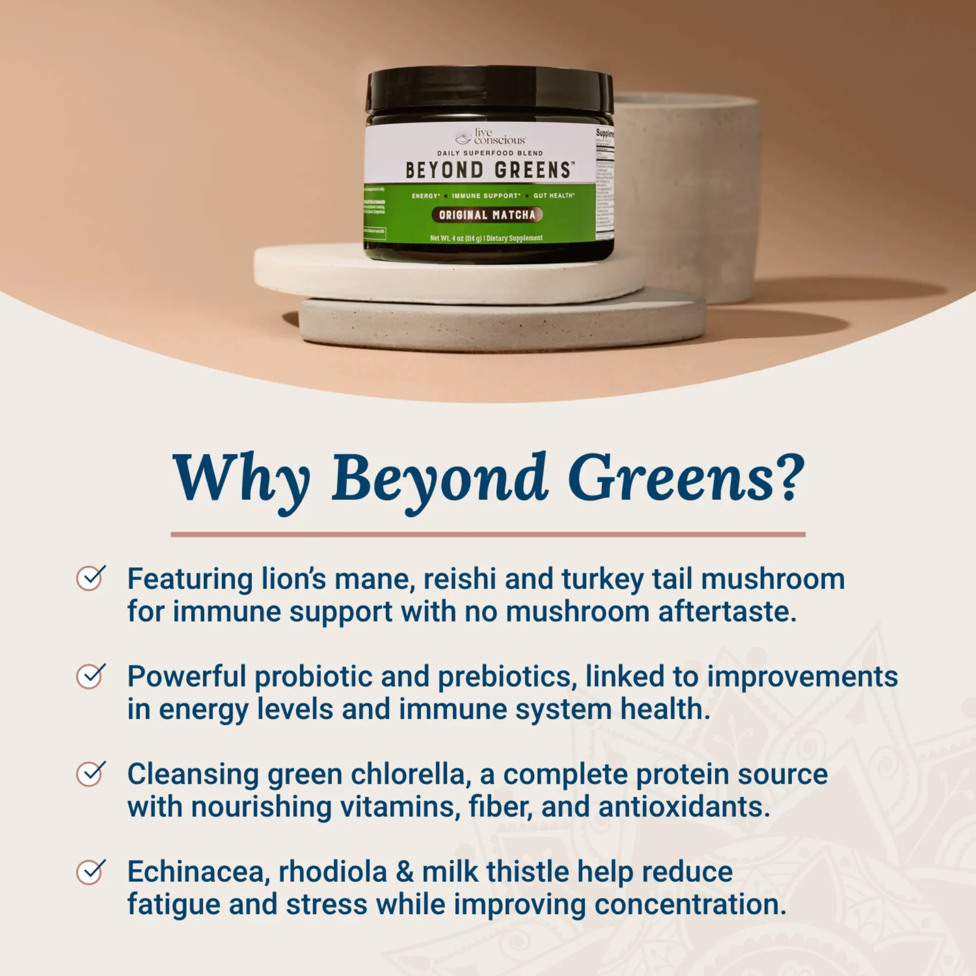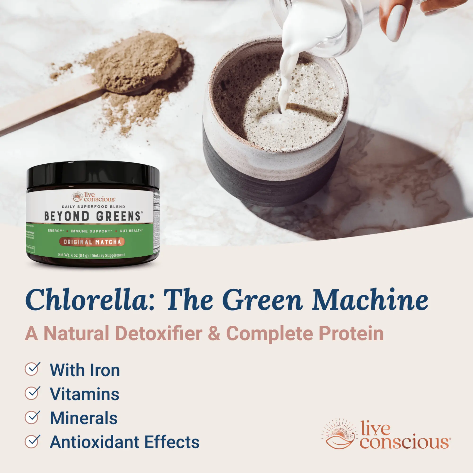 5. Live Conscious Beyond Greens Superfood Drink Powder - Matcha Greens Blend w/Chlorella, Echinacea, Probiotics for Immune Support & Energy
