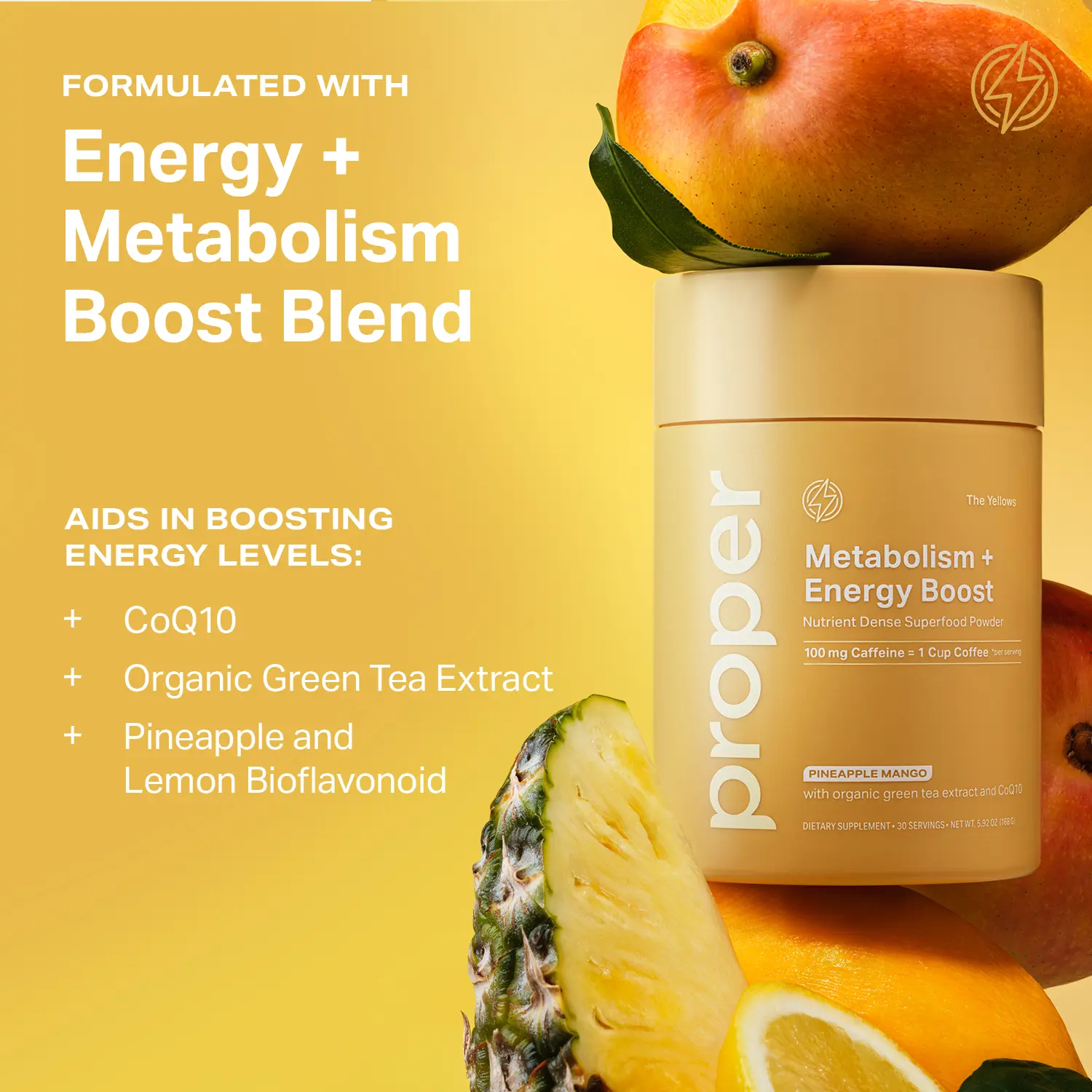 Our Metabolism + Energy Boost Nutrient Dense Superfood Powder helps aid in enhancing energy levels while boosting metabolism. Formulated with a synergistic blend of caffeine, organic green tea, coenzyme Q-10, L-carnitine HCL and B vitamin complex and bioflavonoid fruit complex, this nutrient dense powder is designed to optimize healthy metabolism, energy levels and performance while reducing cravings and supporting overall gut health.