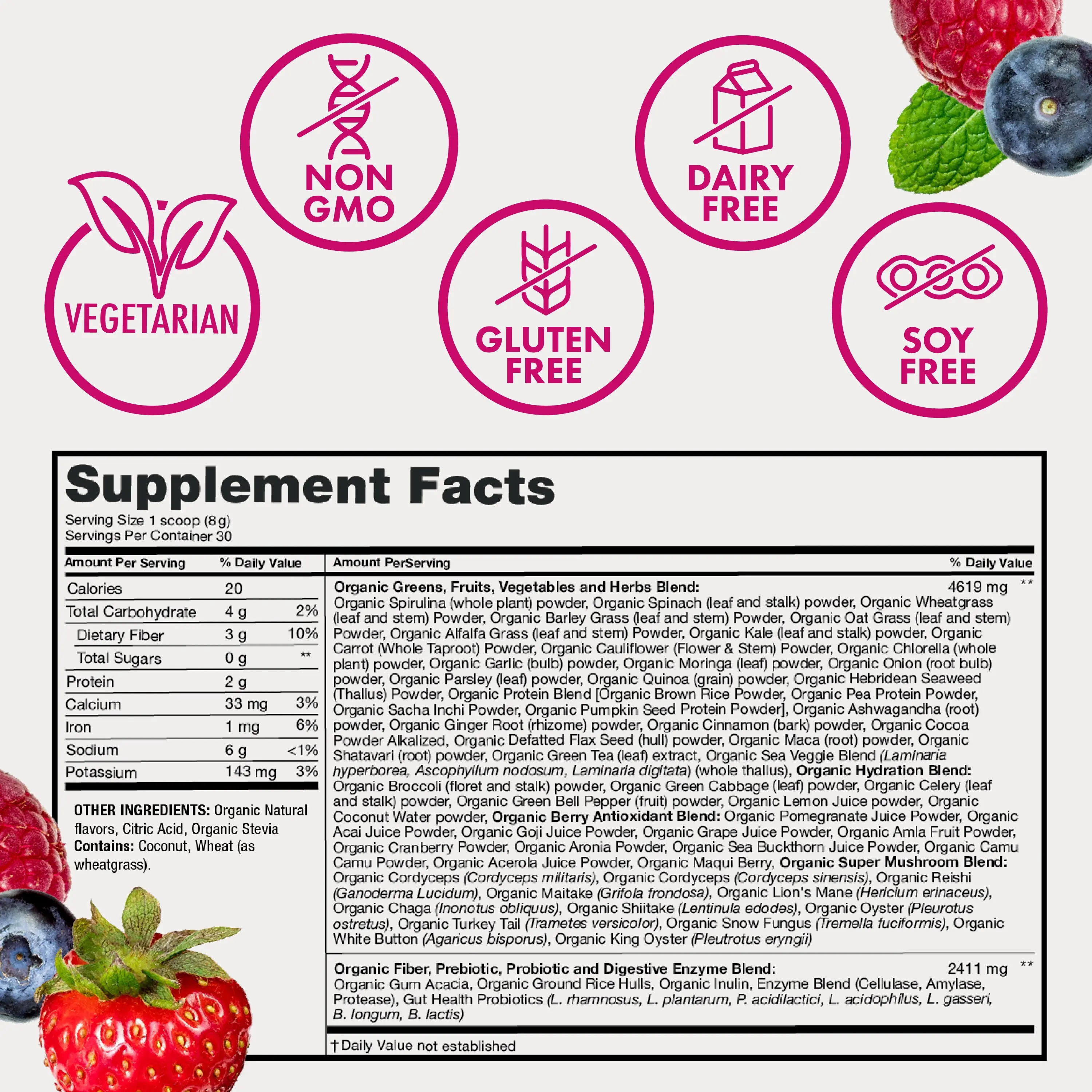 Ā·Complete Superfood Blend: Energize with organic greens, fruits, and vegetables.