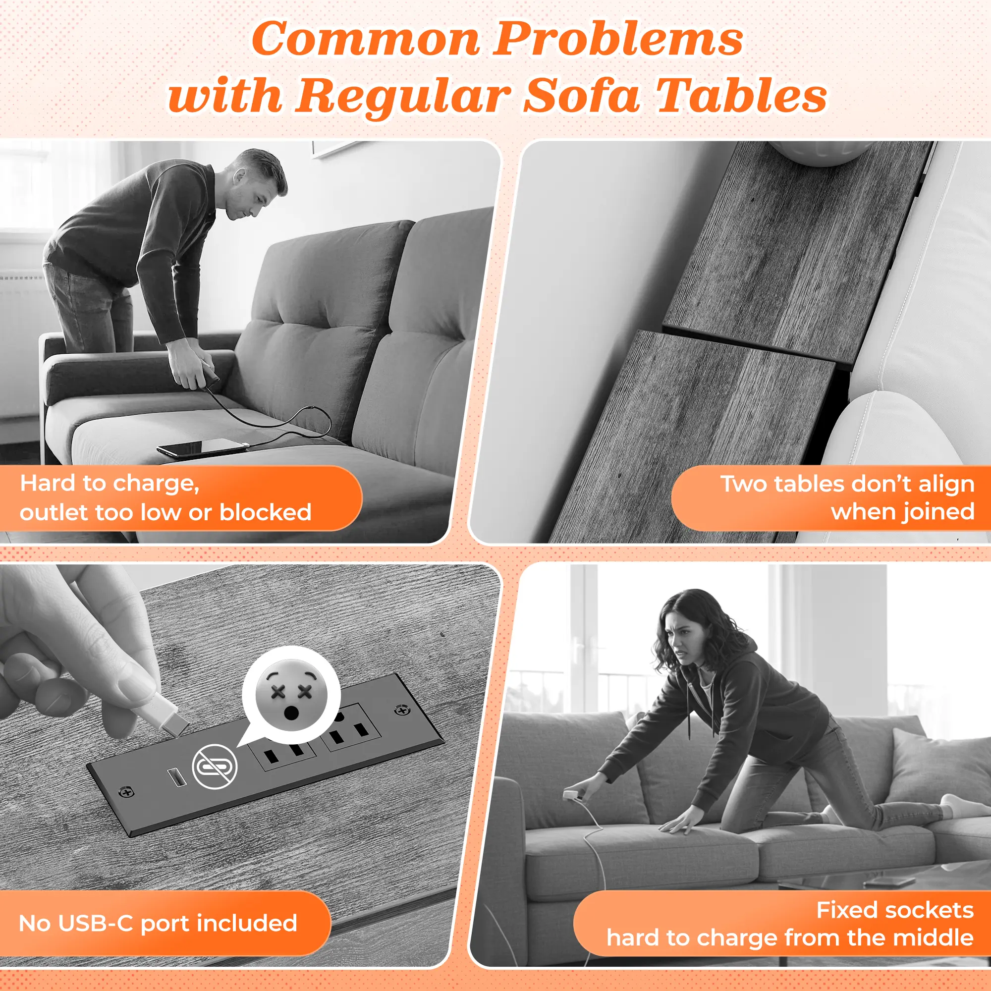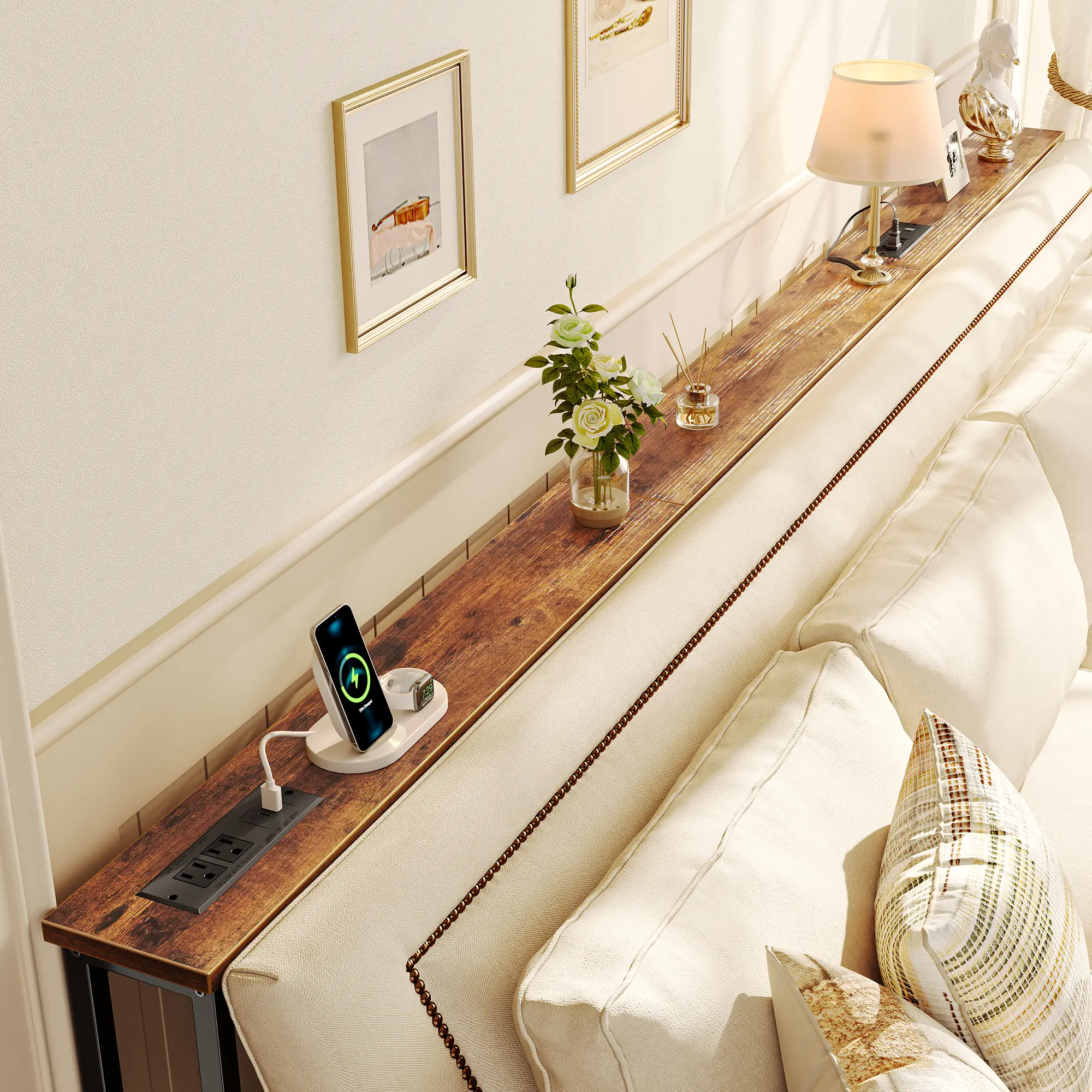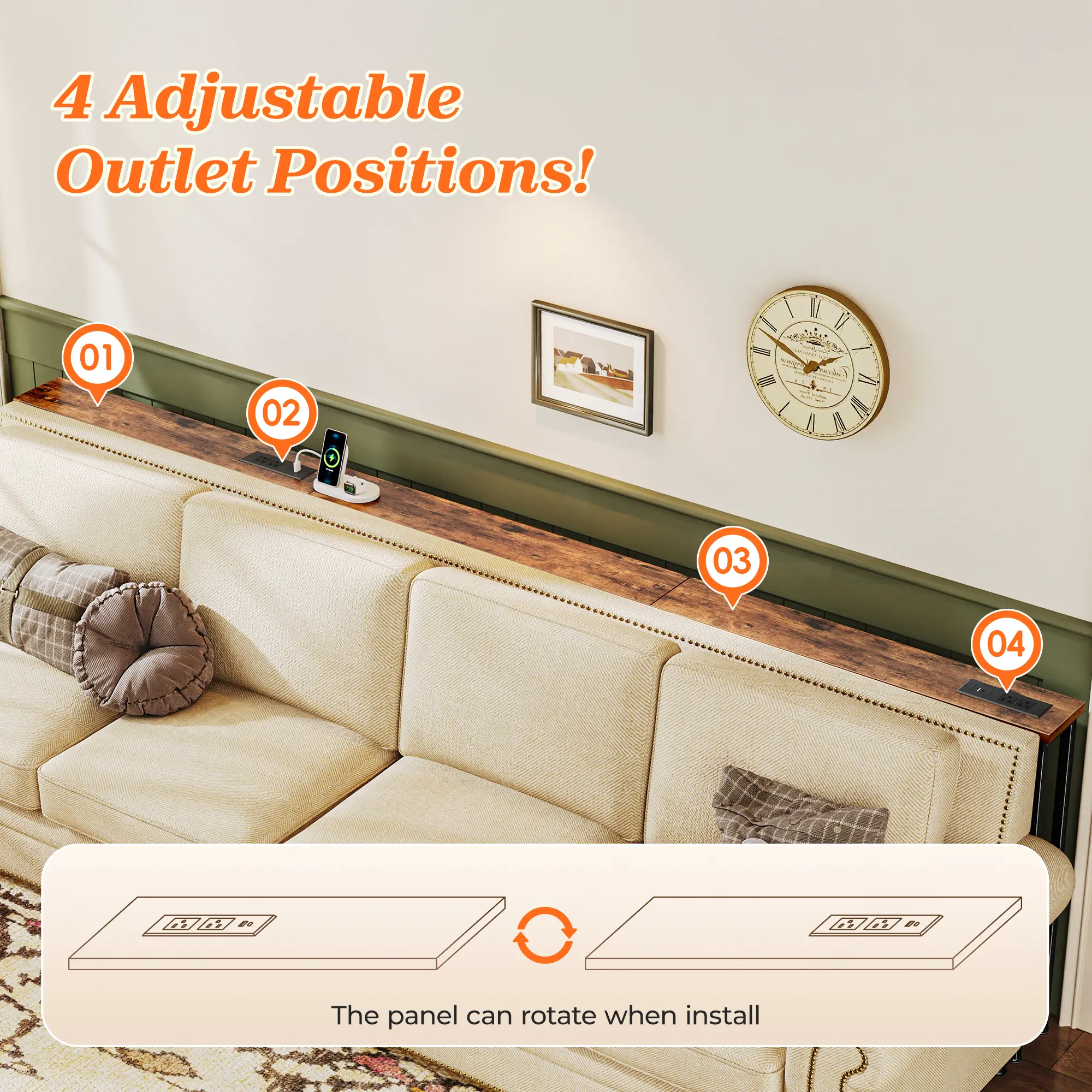 ·【Easy to Assemble & Fits Anywhere】Whether behind a sofa, in an entryway, or along a narrow wall, this couch table behind sofa is the perfect storage solution for tight spaces. Designed to leave room for wall vents and easy airflow. Comes with clear instructions, labeled parts, and tools included, you'll have this sofa table with outlet set up in no time