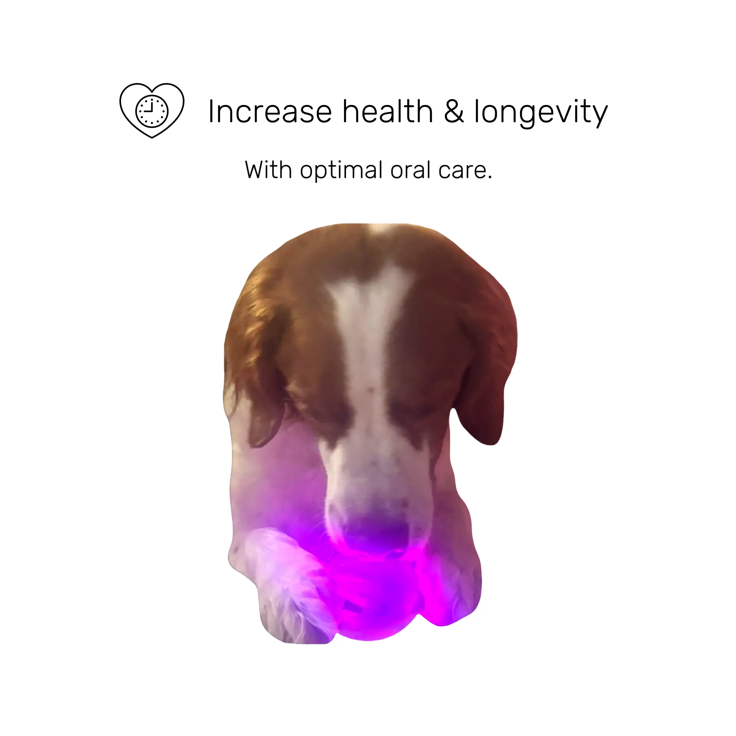 This science-backed dental ball uses breakthrough light therapy to freshen breath, reduce plaque, and strengthen gums—in just minutes a day. No more messy powders or brushing battles with your pup.