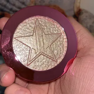 Pictures dont capture the beauty of this highlight! It has a soft Pink shine to it without a bunch of glitter. It is perfect for anyone who wants a little hint of color/shine on their cheeks, eyes, brow bone or lips. I absolutely love it. And mine got signed by Jeffree himself! SCORE! Ima Frame box