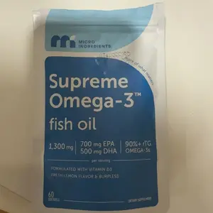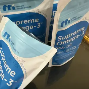 The product arrived in packaging as seen online and timely. The soft gel doesn't smell fishy and weren't discolored. They had a slight sweetness going down with water. I hope they work well as microingredients has not failed me yet with any of their products.