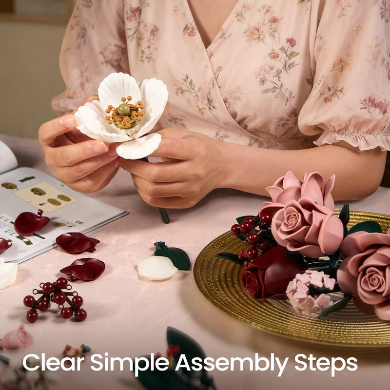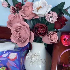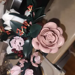 Very cute, easy to build. Looks like legos themselves. Almost cuter than actual legos. I added the black roses in from another set, but same people that sold the bouquet!