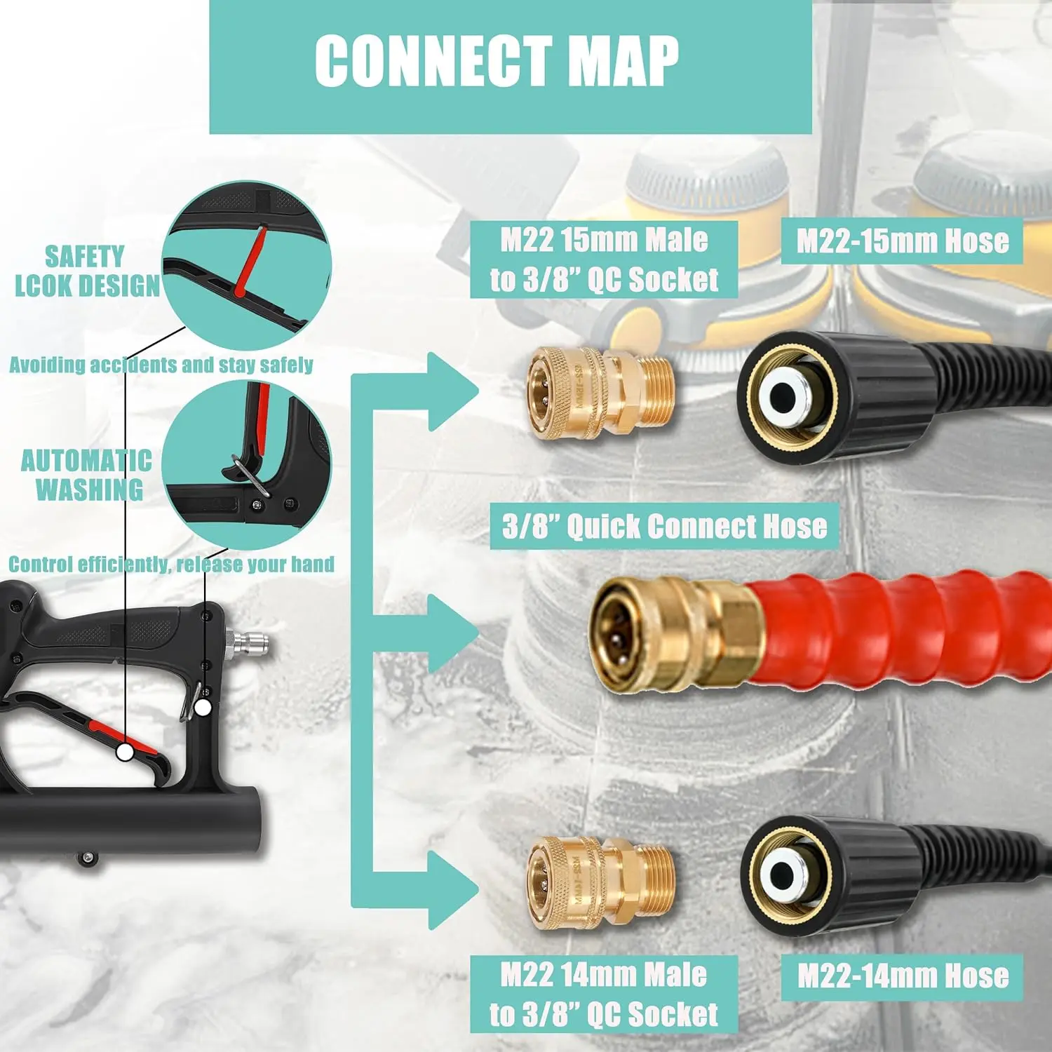 ·SAFETY LOCK DESIGN & AUTOMATIC WASHING LOCK DESIGN: Concrete cleaner pressure washer adopts safety lock design, which can prevent accidents and ensure your safety during use. In addition, the automatic cleaning lock design can effectively control the operation, freeing your hands and reducing the burden on them. Our innovative design allows you to enjoy a safer and more convenient cleaning experience!