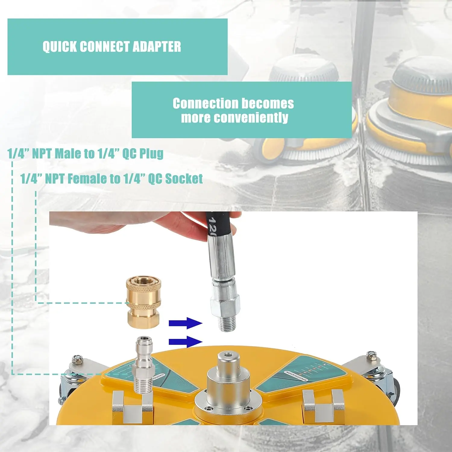 ·UPGRADED SURFACE CLEANER: Our improved power wash surface cleaner’s compatible with most power washers, boasting a maximum working pressure of up to 4500 PSI. With a high tolerance for heat, pressure washer attachments can handle water temperatures of up to 158°F (70℃), making it ideal for various cleaning tasks. Wide pressure washer surface cleaner also offers a generous maximum water flow of 6.6 GPM, ensuring efficient and thorough cleaning.