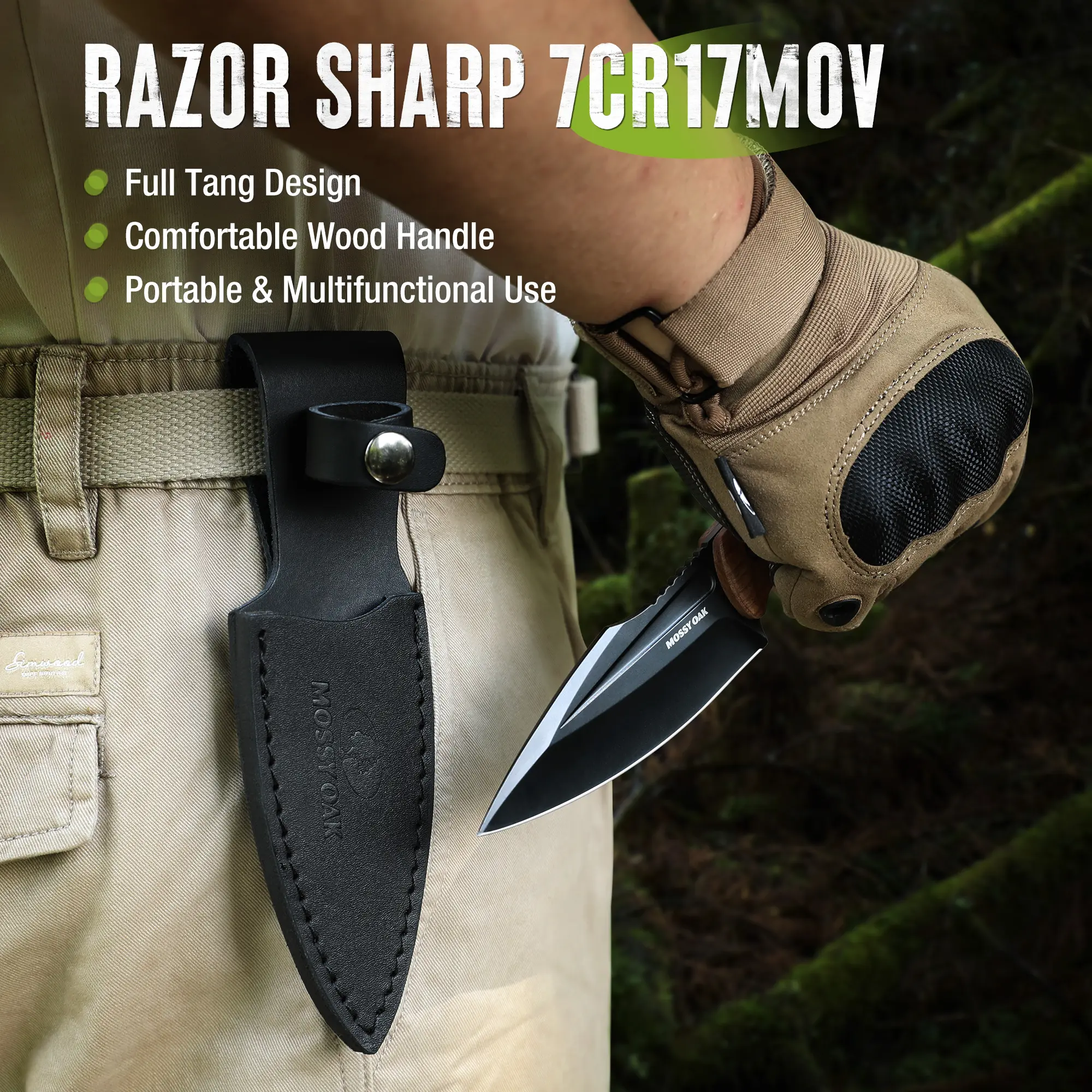 ·High-Quality Knife: The MOSSY OAK 8-1/2" Fixed Blade Knife features a 7CR17MOV stainless steel blade. This outdoor knife offers excellent strength, edge retention, and corrosion resistance
