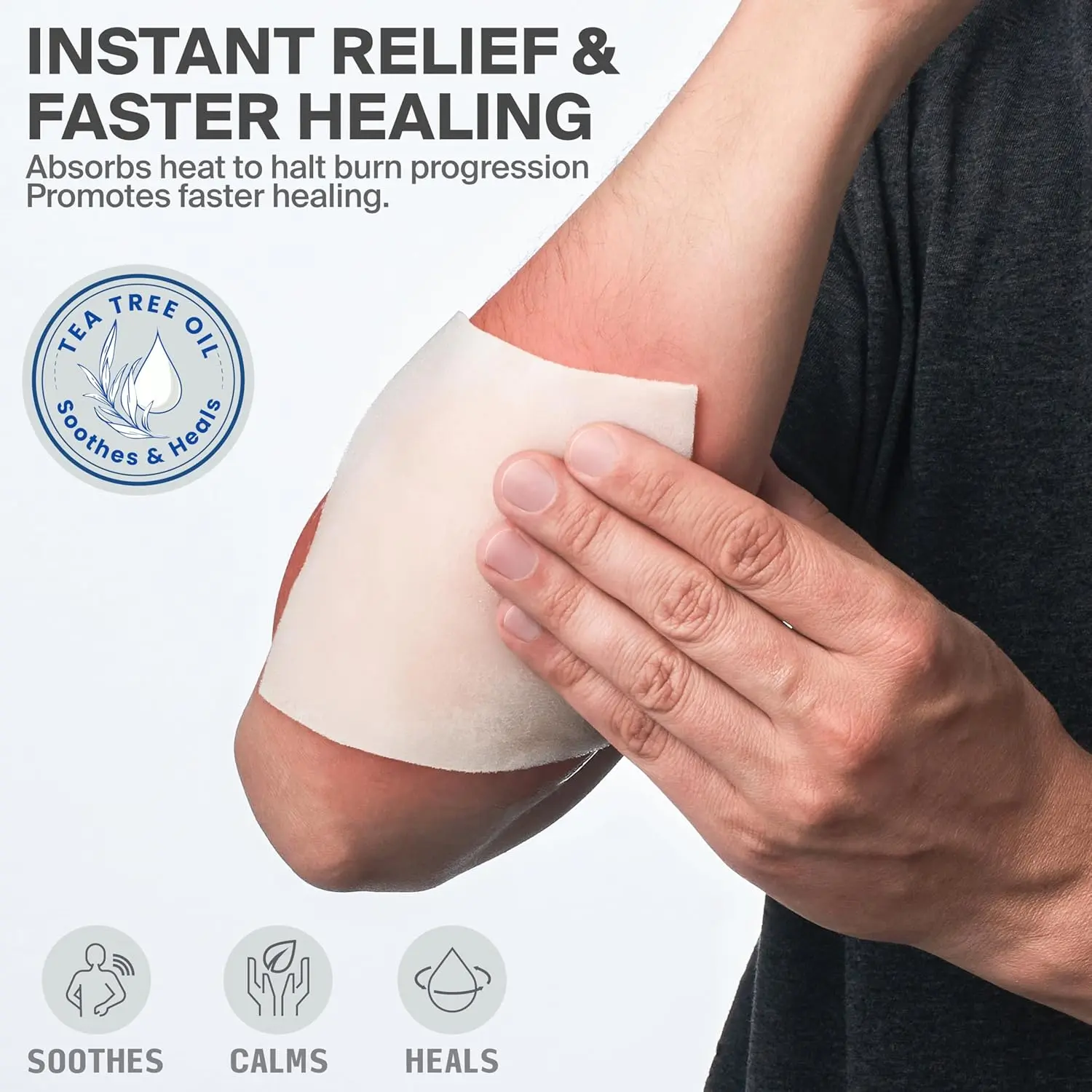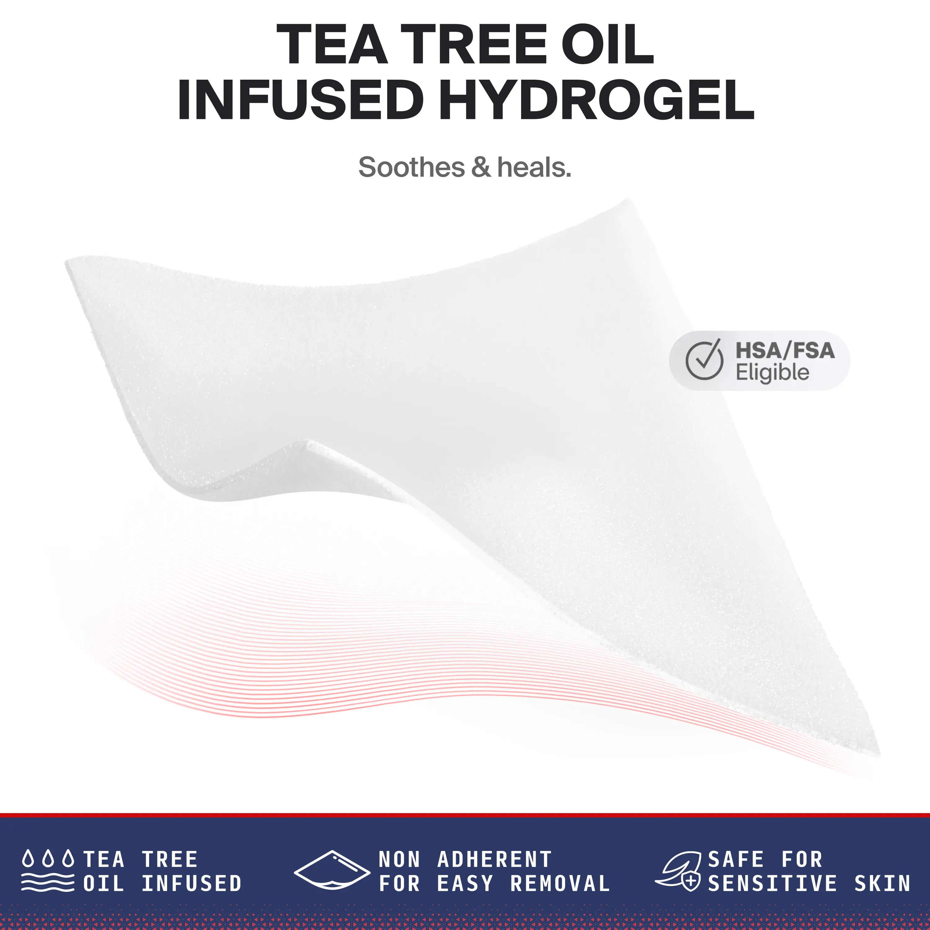 Experience soothing and cooling benefits of pure tea tree oil. Combined with hydrogel technology, it cools and calms injured skin. It promotes healing and prevents infections.