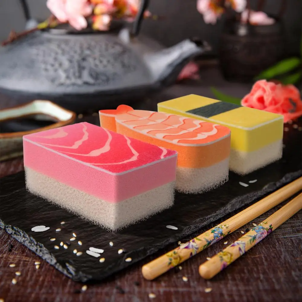 Doing dishes is a raw deal, so let Fred's Washabi sponges help lighten the mood, while getting your dishes rice and clean! Each perfectly-paired set of 3 includes a shrimp, tuna, and tamago sponge, with high-quality multilayers that get the job done.