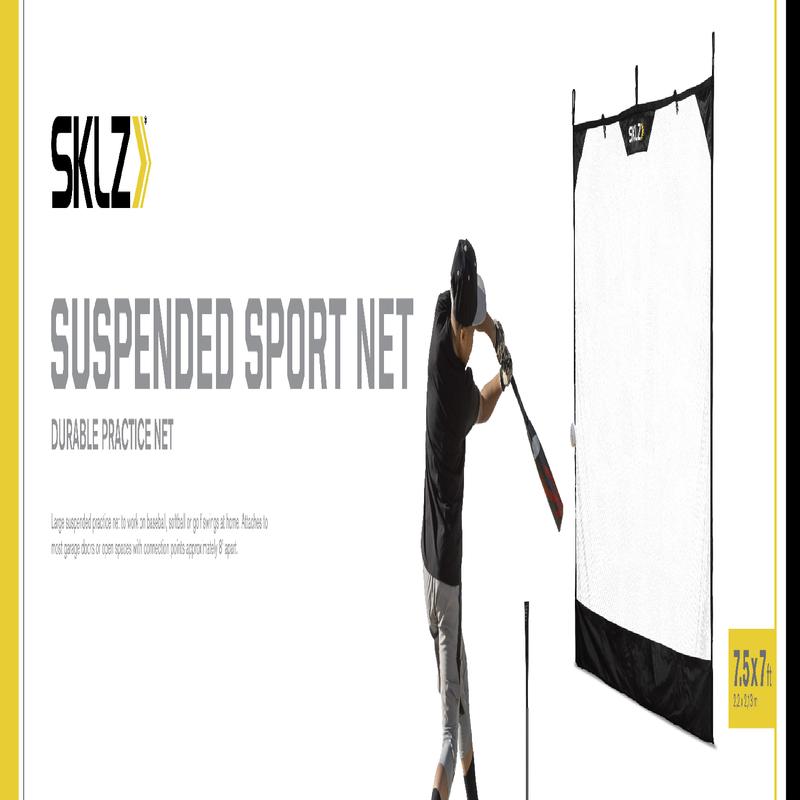 The large 7.5’ x 7’ suspended practice net allows athletes to work on baseball, softball, or golf swings at home. The practice net attaches to most garage doors or open spaces by its connection points. The net has a fiberglass bottom pole that provides structure and reduces kick back to better collect balls during practice. Its connection points are secure enough to take on hard hits and make setting up and breaking down easy.
