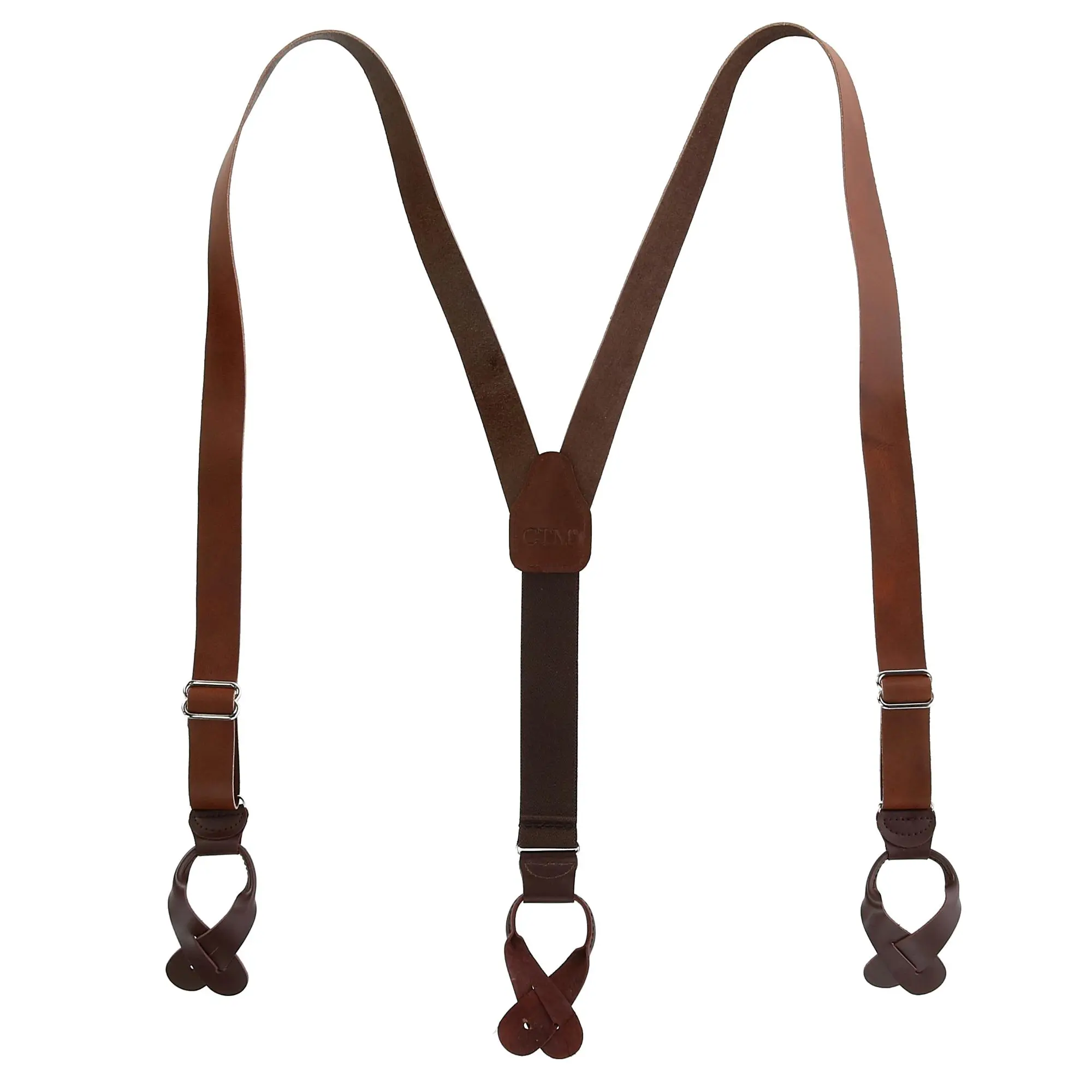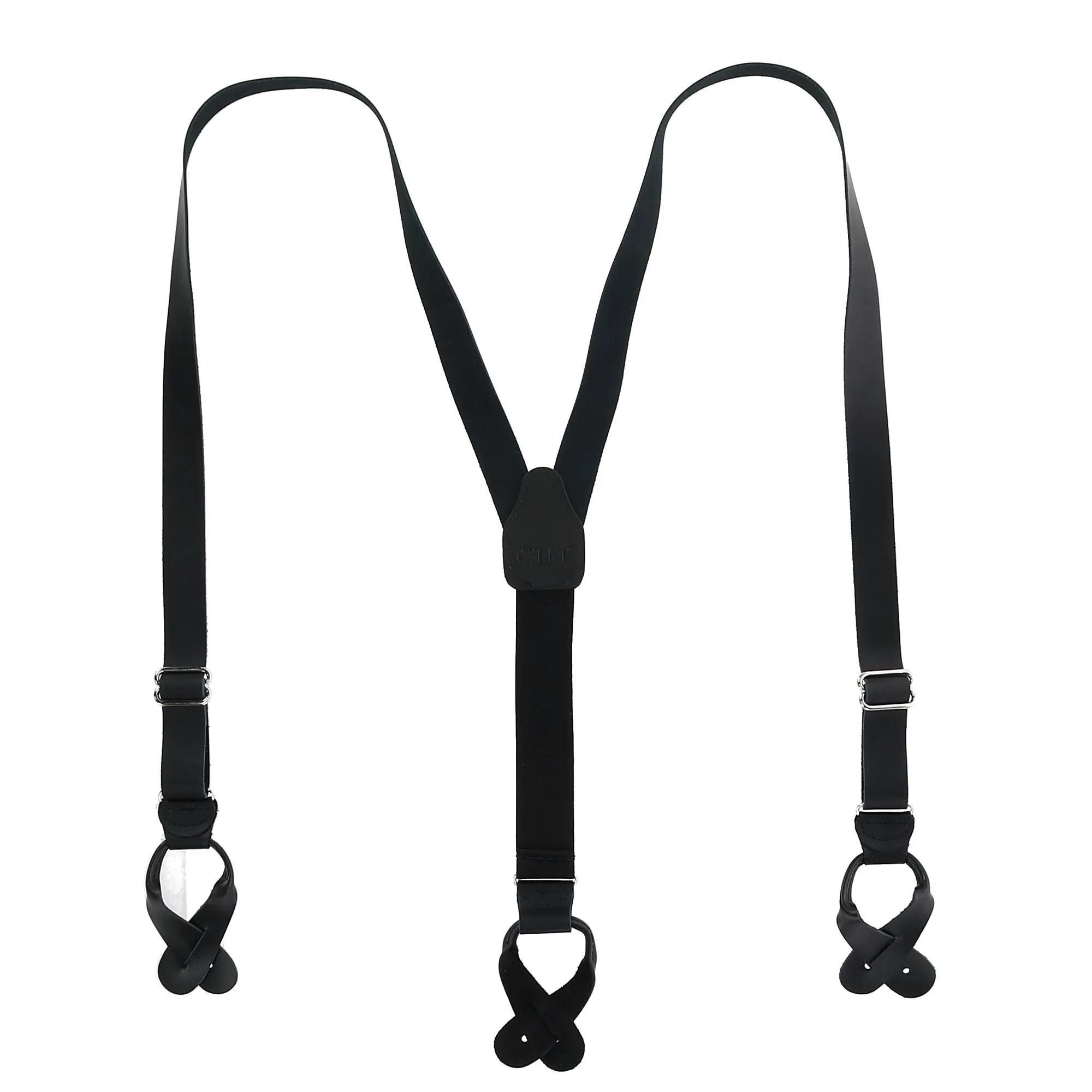 CTM Men's Coated Leather Button-End 1 Inch Suspenders