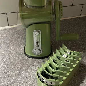This hand crank cheese grater is a functional and aesthetically pleasing kitchen essential. Made of 18/10 stainless steel blades and food-grade materials, it's BPA-free for peace of mind. Green, the color of nature, adds a touch of natural beauty to your kitchen. Enjoy healthy food easily with this versatile tool.