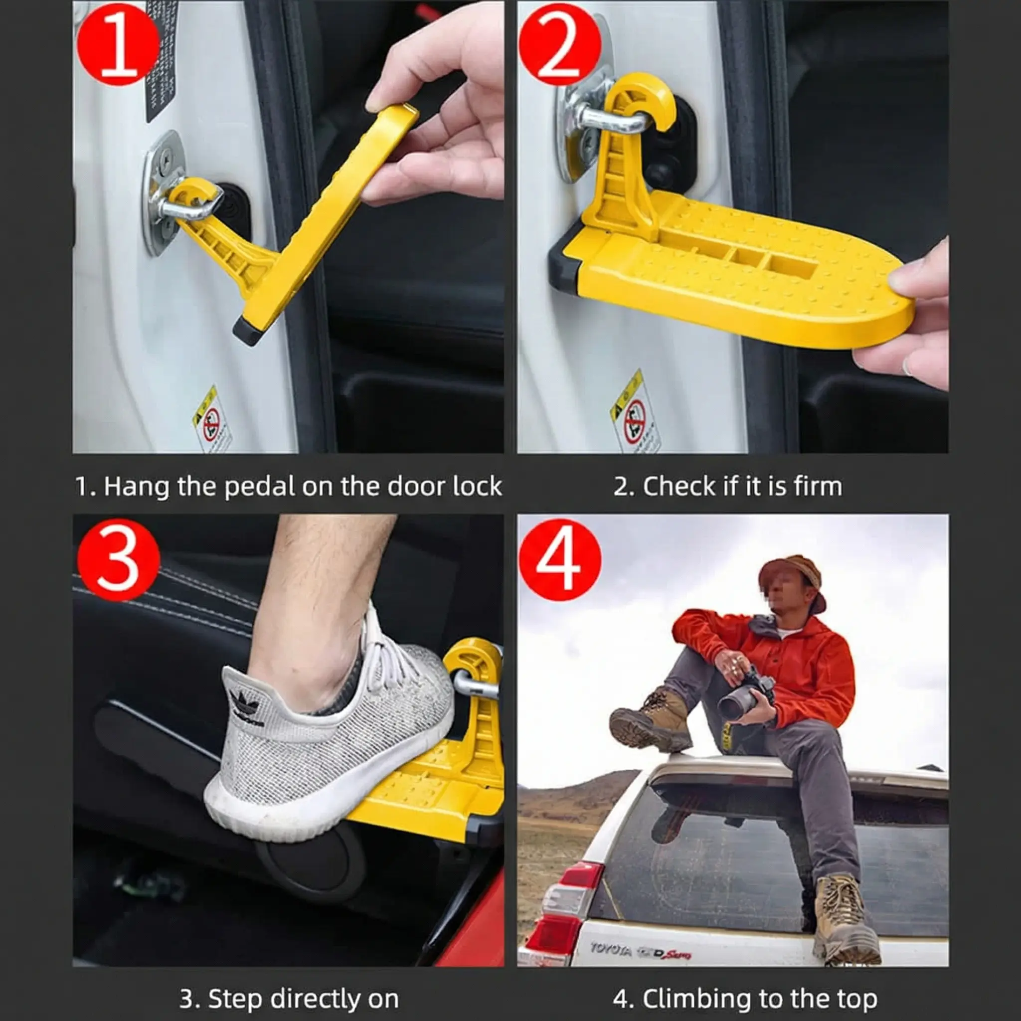 ·Easy Roof Rack Access: This car door hook-on foot pedal ensures effortless access to your roof rack. Perfect for SUVs, sedans, and trucks. 🚛