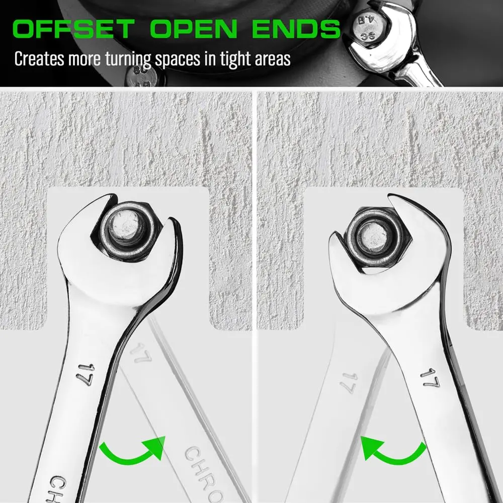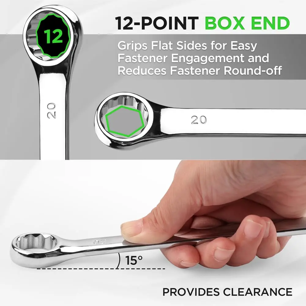 ·Easy to use, Precision 12-Point Box end Allows Easy Fastener Engagement. end Offset by 15 Degrees is Better for Tight Working Spaces.