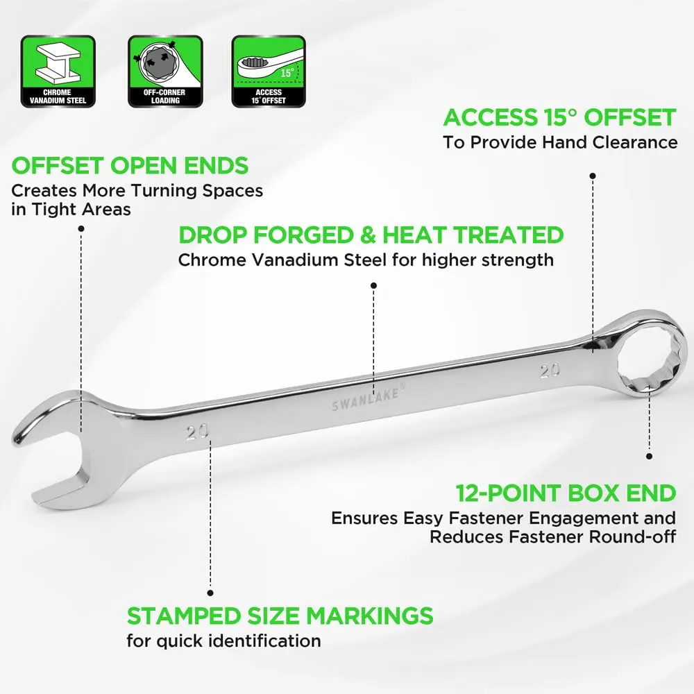 ·Wrench is Made of High-Strength Chrome-Vanadium Steel Construction to Ensure Durability, and an Additional Mirror Finish Improves the Surface's Corrosion Resistance, Effectively Extending Eervice Life.