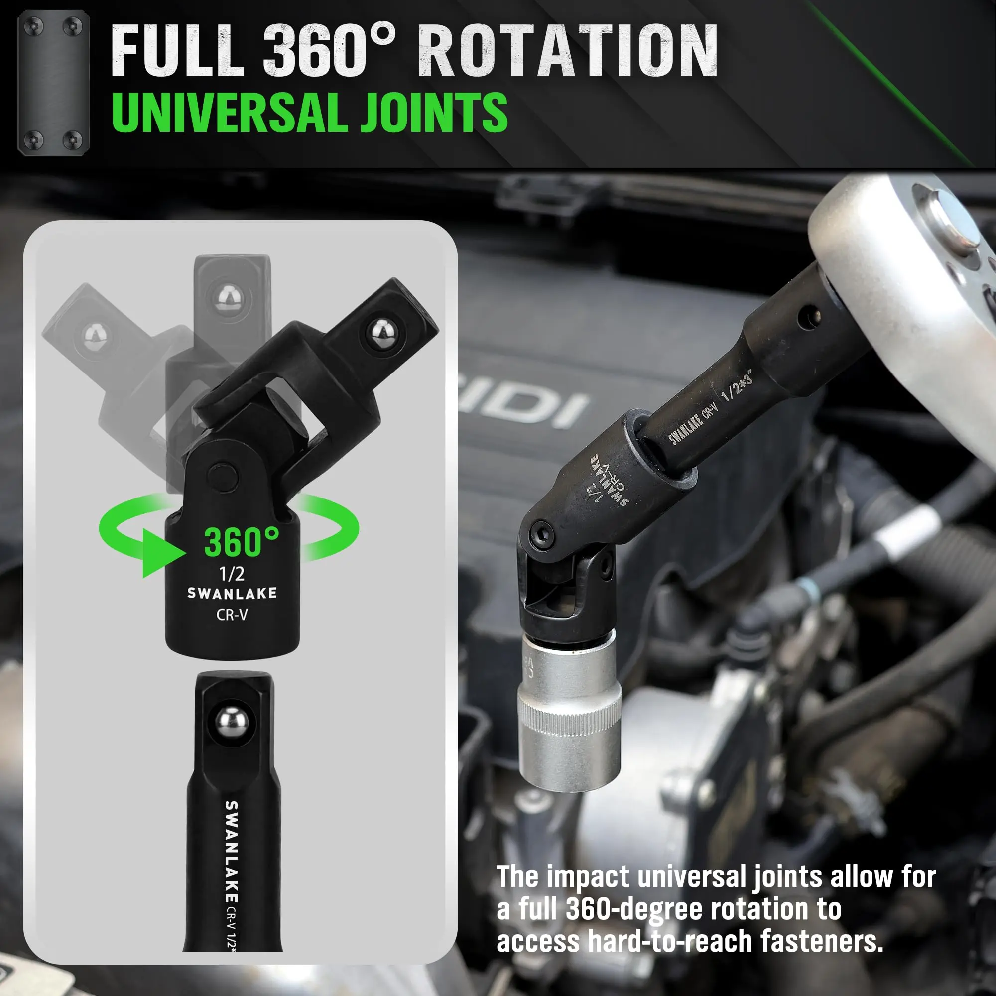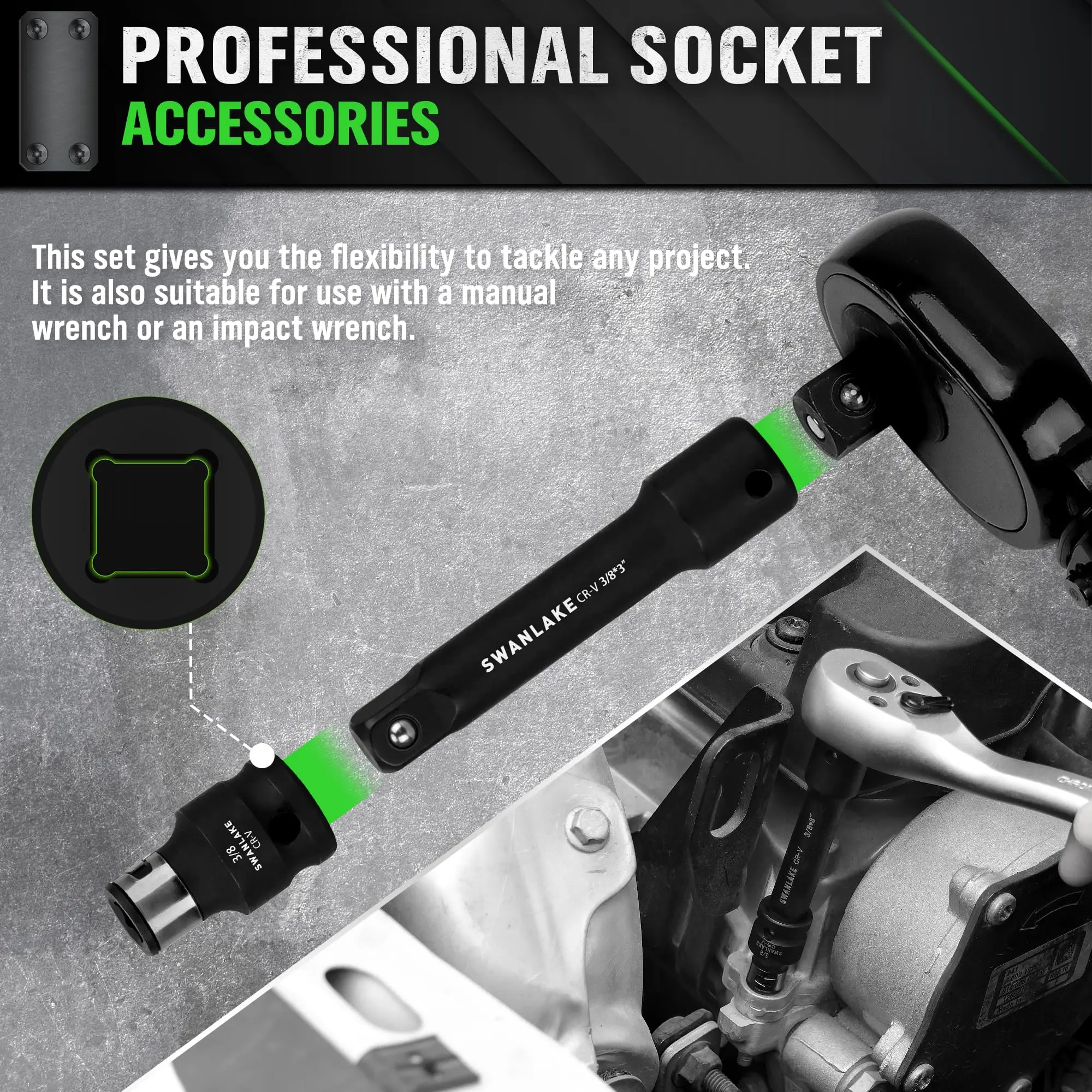 ·Perfect for Tight Spaces: Extension bars and swivels provide flexibility in hard-to-reach areas and awkward angles.
