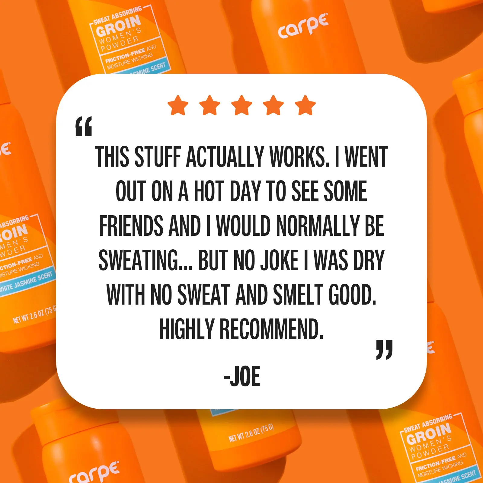 Okay Okay, it is still over 100 degrees in California. I can't go outside with some kind of sweat. This is a life saver. I put some on before getting dressed, and my thighs stay dry all day!!!