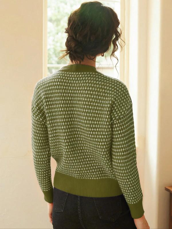 5. Women's Random All Over Print Contrast Binding Sweater, Classic Pullover, Casual Long Sleeve Round Neck Jumper for Fall & Winter, Fashion Ladies' Knitwear for Daily Wear