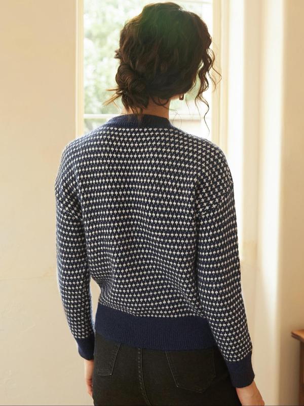 【Contrast Binding】: The contrast binding adds a distinctive flair, enhancing the visual appeal and giving a fresh twist to traditional knitwear.